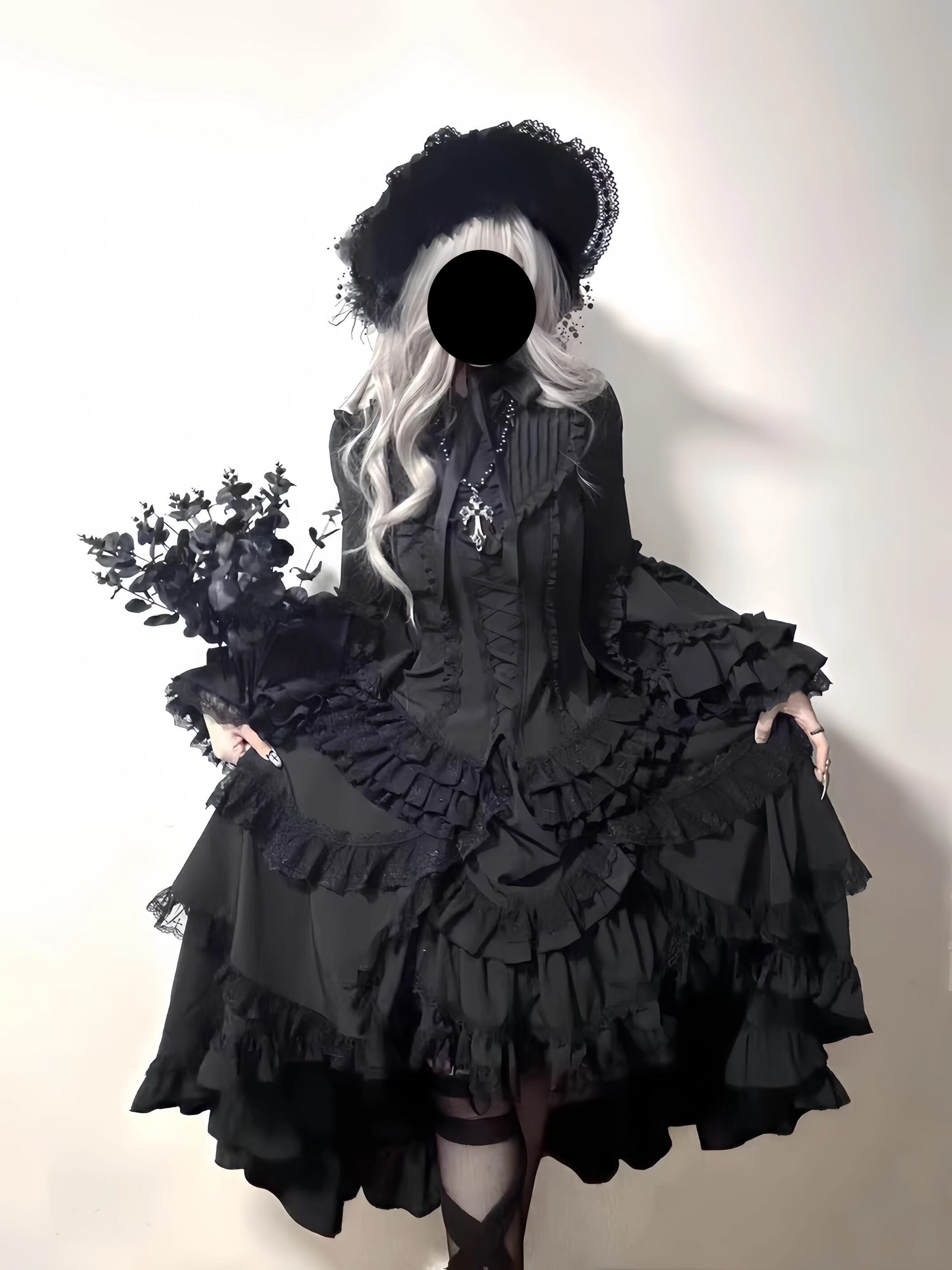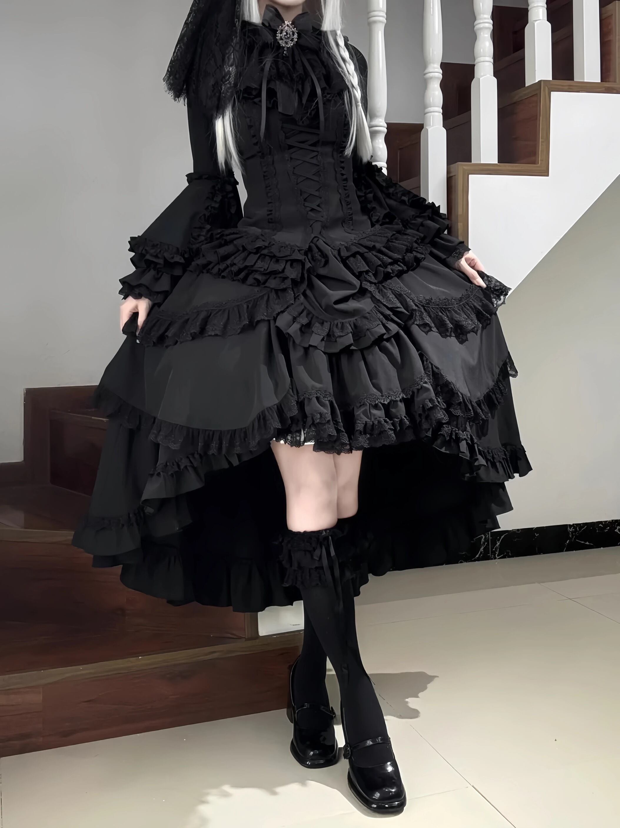 フェニックス ゴシック ロリータ ダーク スカート ロリータ スリム ラージ スリーブ ブラックウィドウ ハロウィン コスプレ