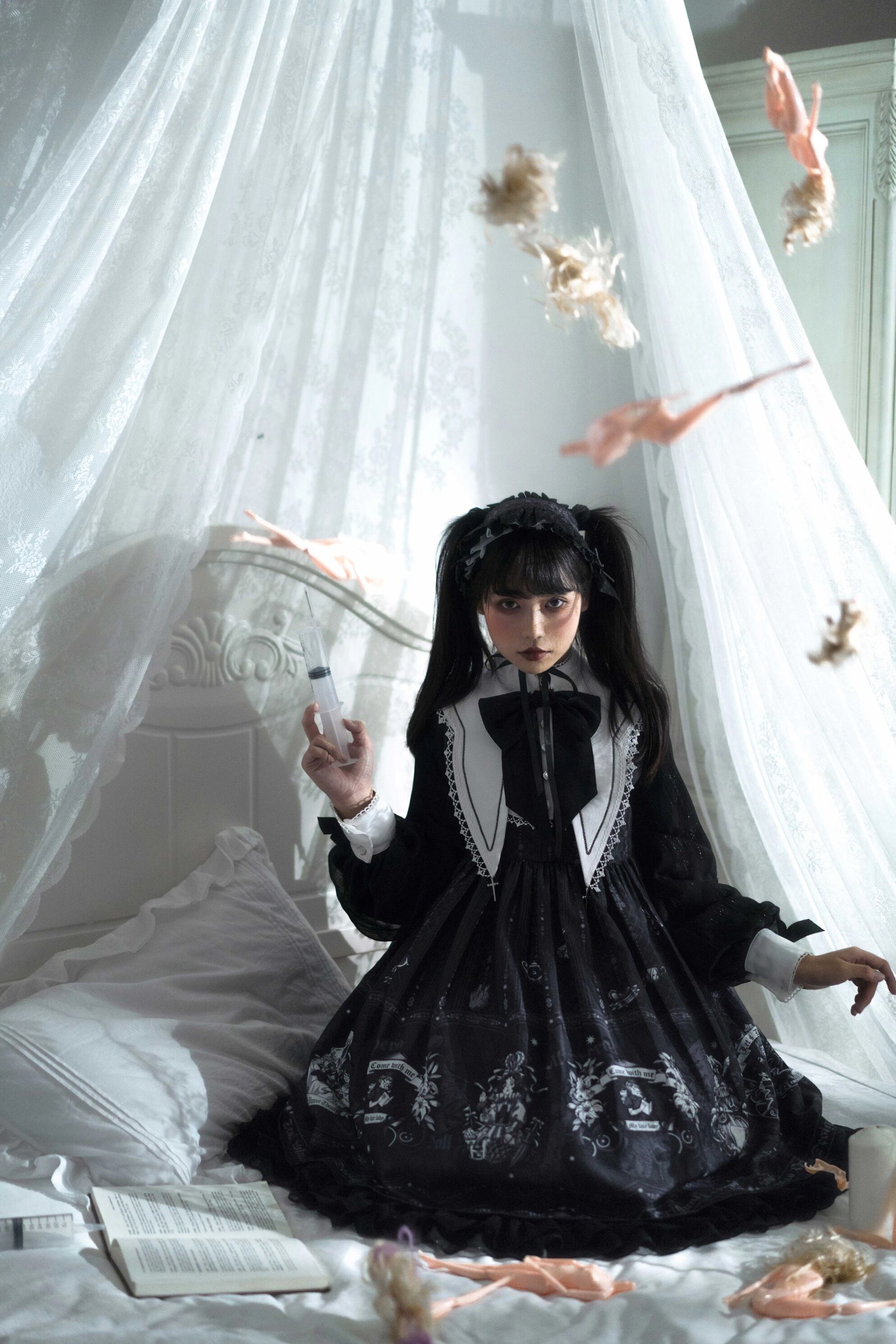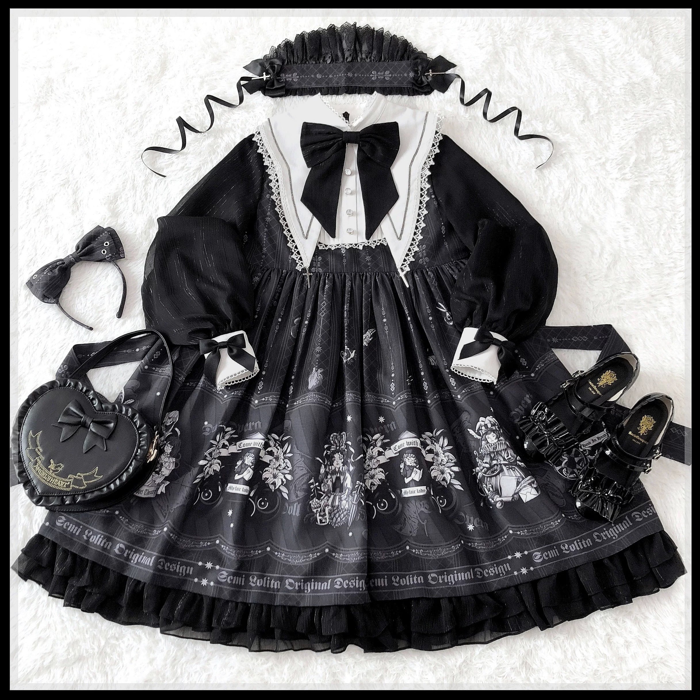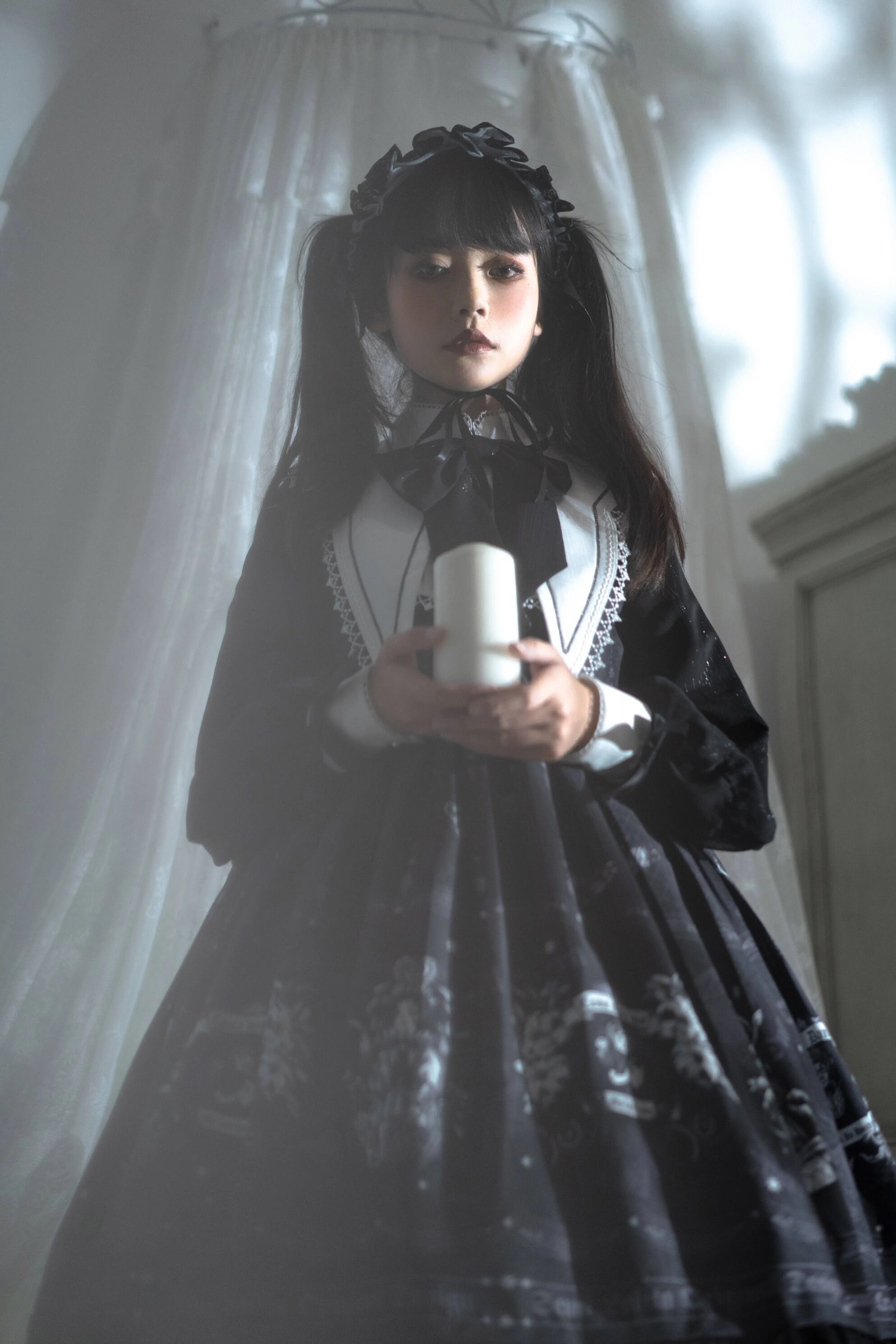 ブラックを基調に、繊細なプリントとレースを重ねた