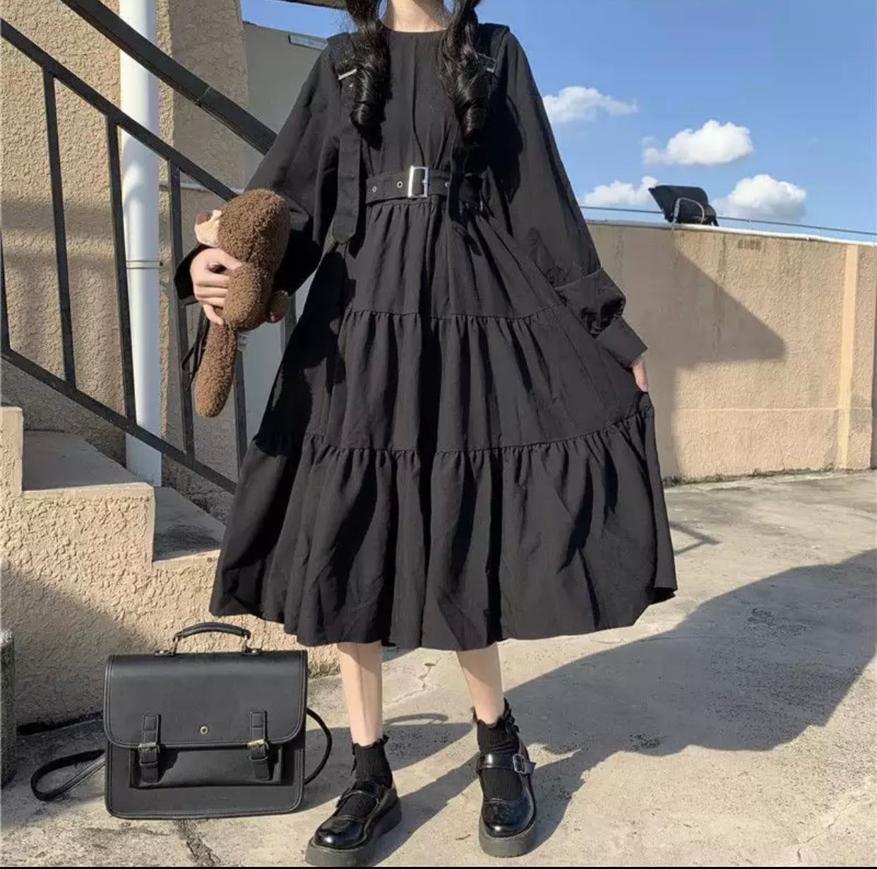 サスペンダー ハーネスベルト ワンピース 黒コーデ 地雷系 ゴスロリ