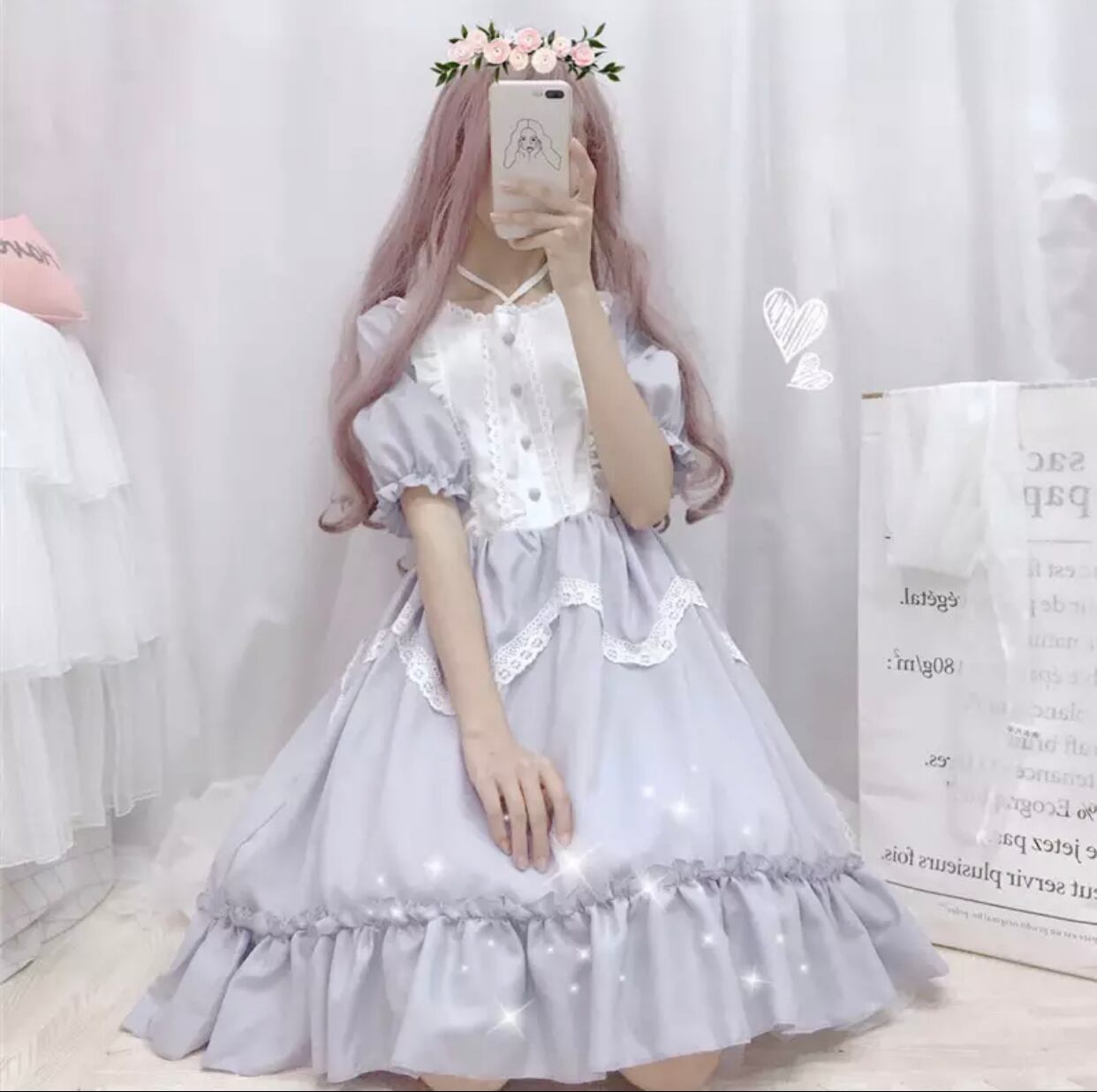 ヴィンテージドレス ロリータドレス ソフト レースドレス 半袖 かわいい ロリータ