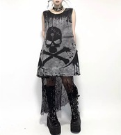 ノースリーブ ベスト スカルプリント ワンピースゴシック 痛かわ パンク