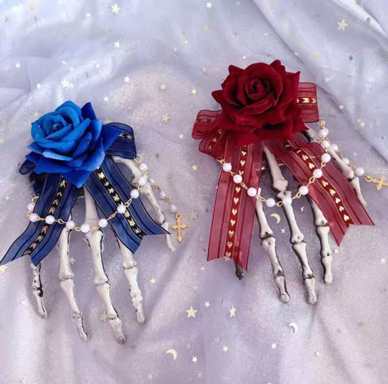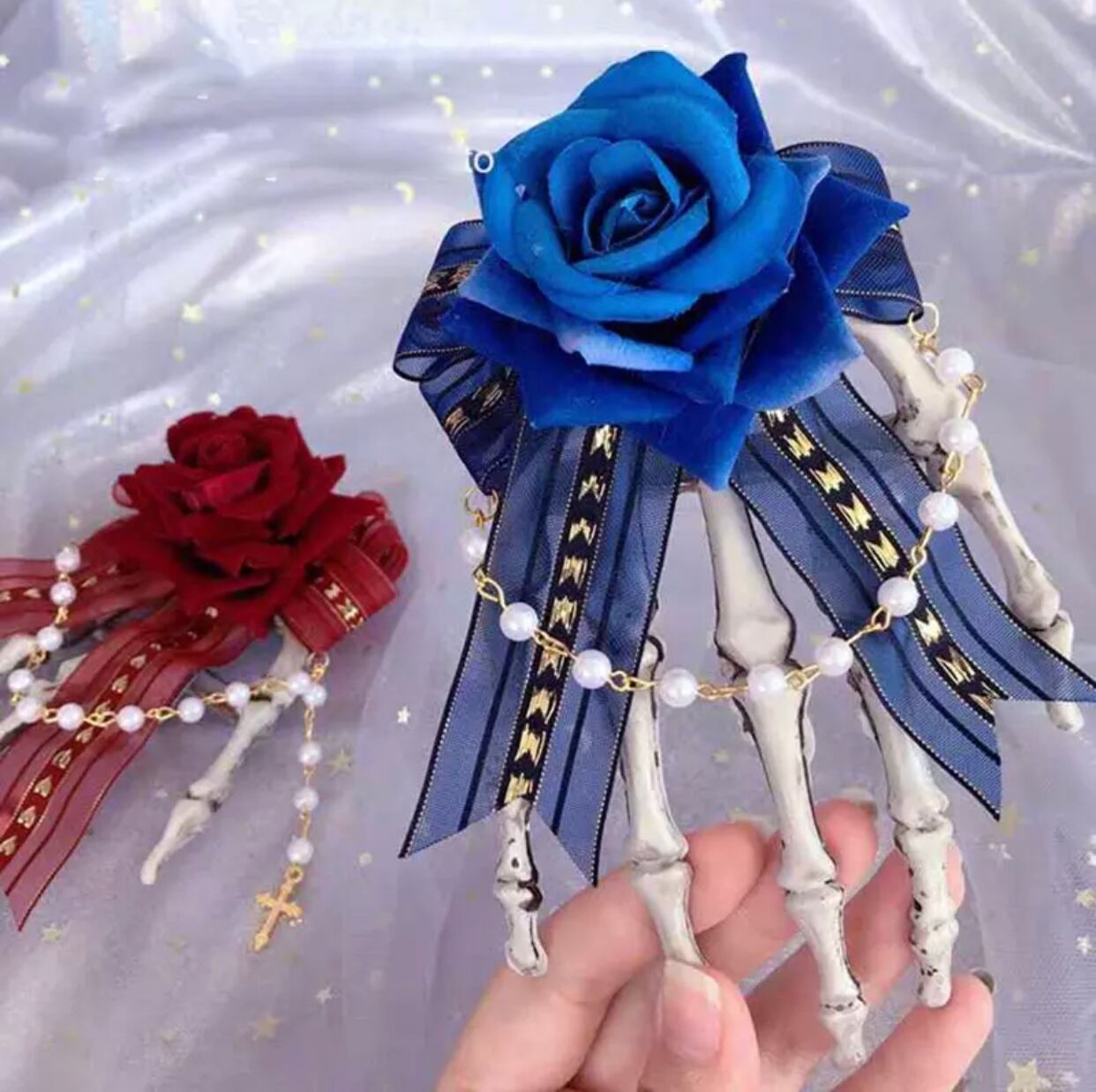 ヘアクリップ スカル&バラ バレッタ ヘアピン