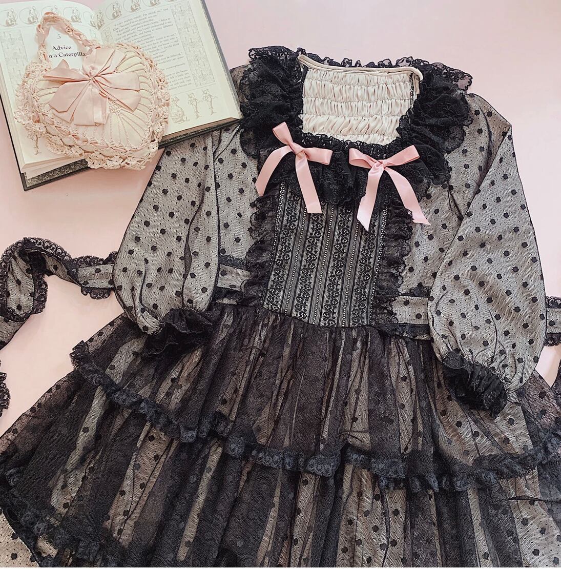 【LEFLACON正規品】*⑅୨୧ ヴィンテージ風 ネットレースワンピース+ヘッドドレス エレガント ゴシック ロリータ୨୧⑅*