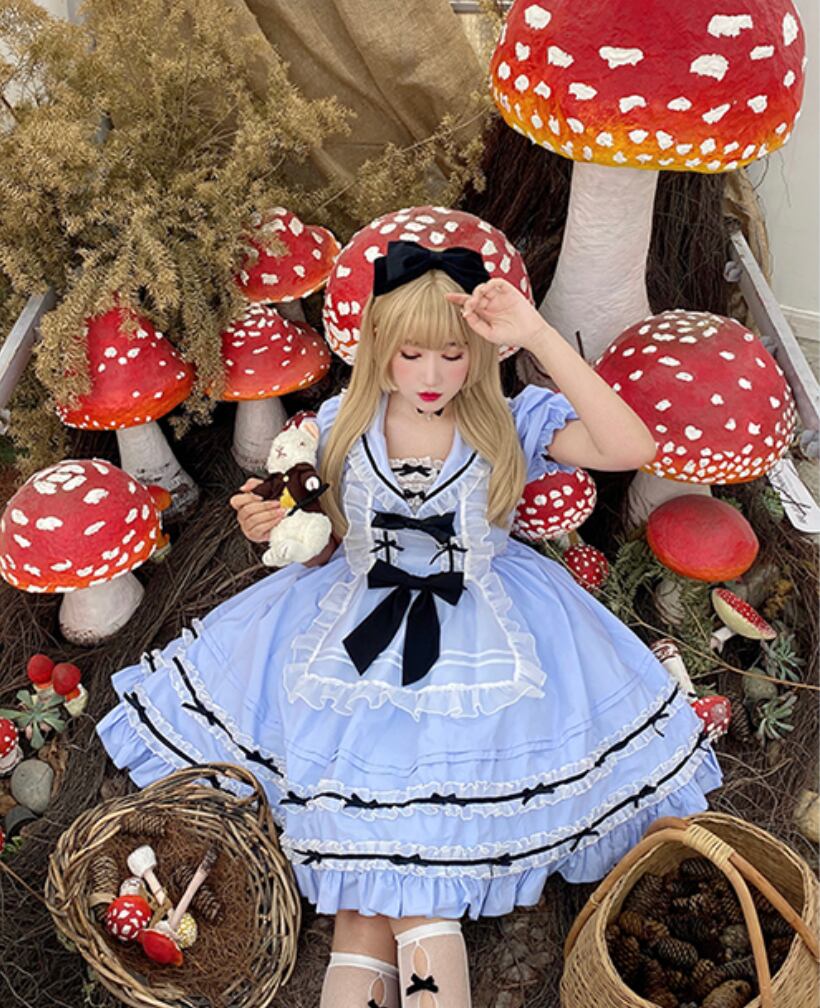 【diamondhoney】アリス 長袖OP 透明エプロン ヘッドバンド ロリータ ゴシック エレガント