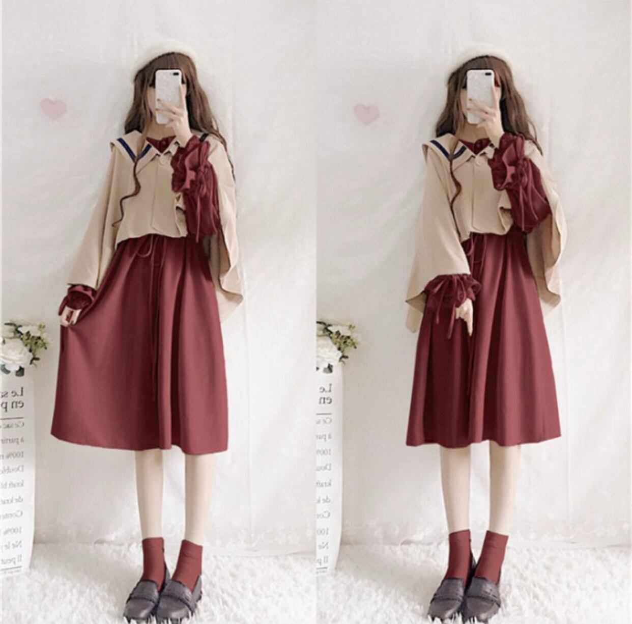 春秋ワンピース 2点セット ツーピース ポンチョ /マント ゴスロリ/セーラー スクール かわいい