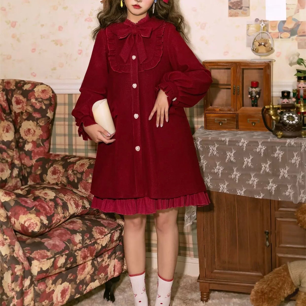 リボンフリルコート ロリータ 赤/白/黒
