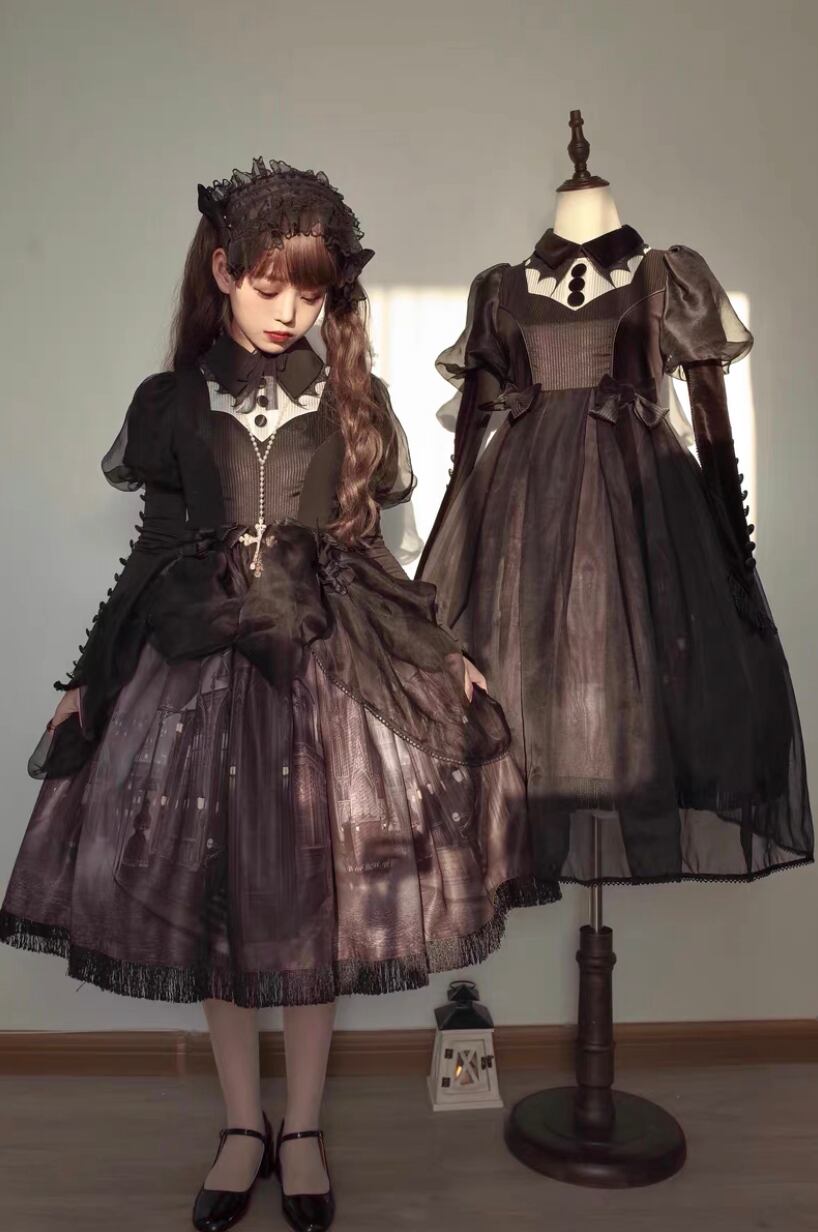 暗黒ロリータ OP 長袖ワンピース ドレス OPのみ。
