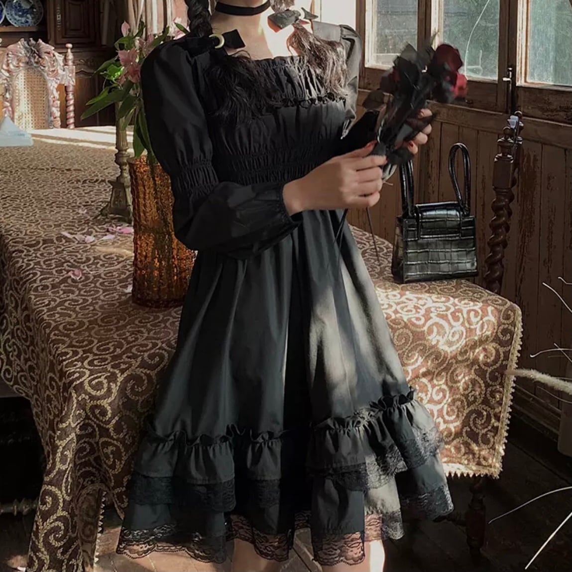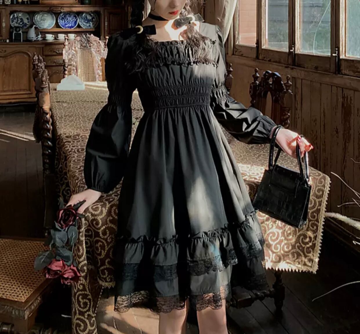 スクエアカラー パフスリーブ ロリータドレス パンク ゴスロリ