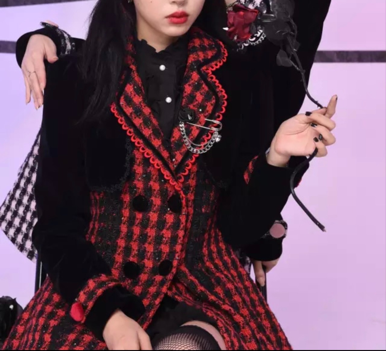 フェイクツーピース ツイード ダブル チェック柄 Aライン ロリータドレス パンク ゴスロリ クリスマス