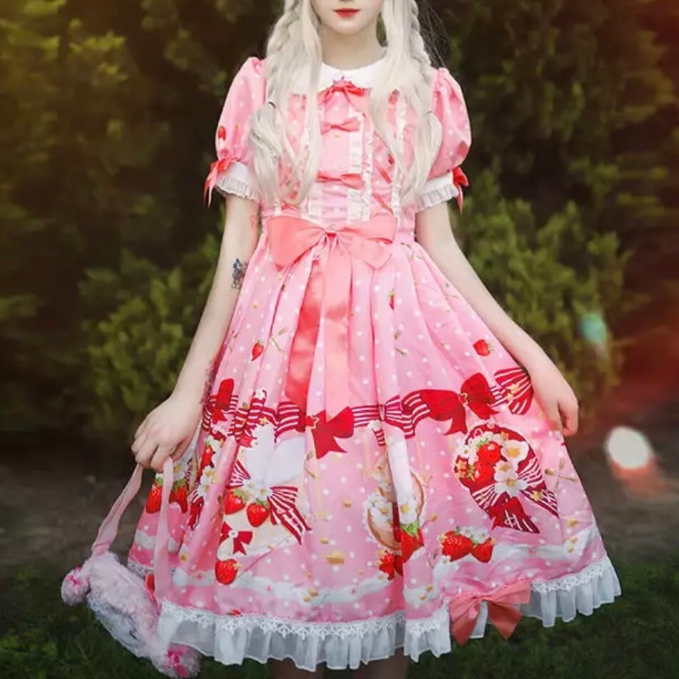 イチゴのティーパーティー フリルドレス OP ロリータドレス パンク ゴスロリ