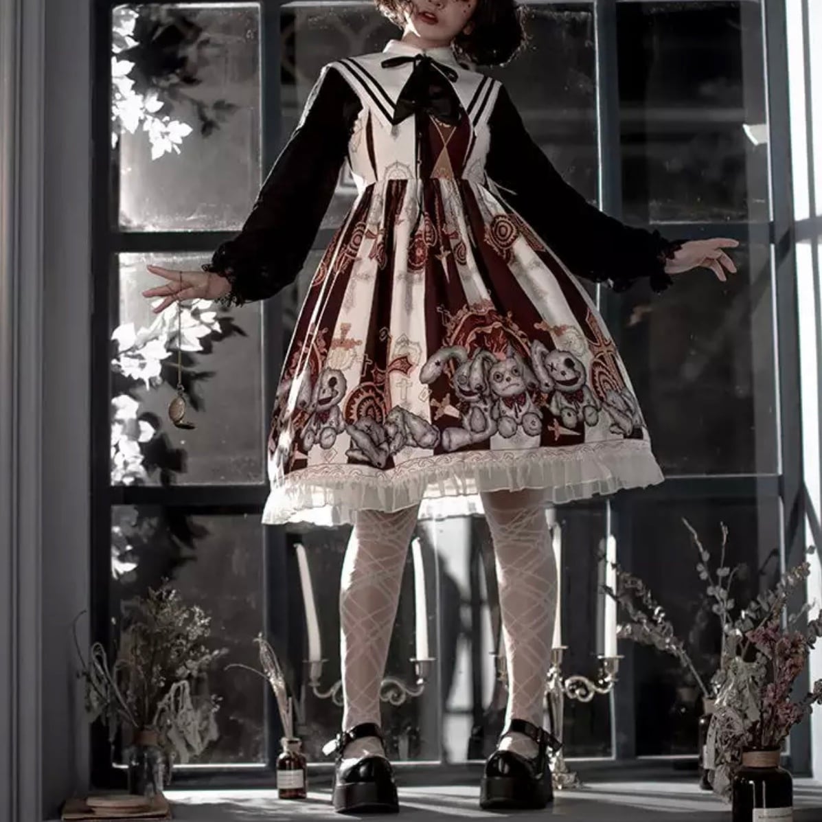 包帯うさぎプリント JSK ロリータドレス パンク ゴスロリ