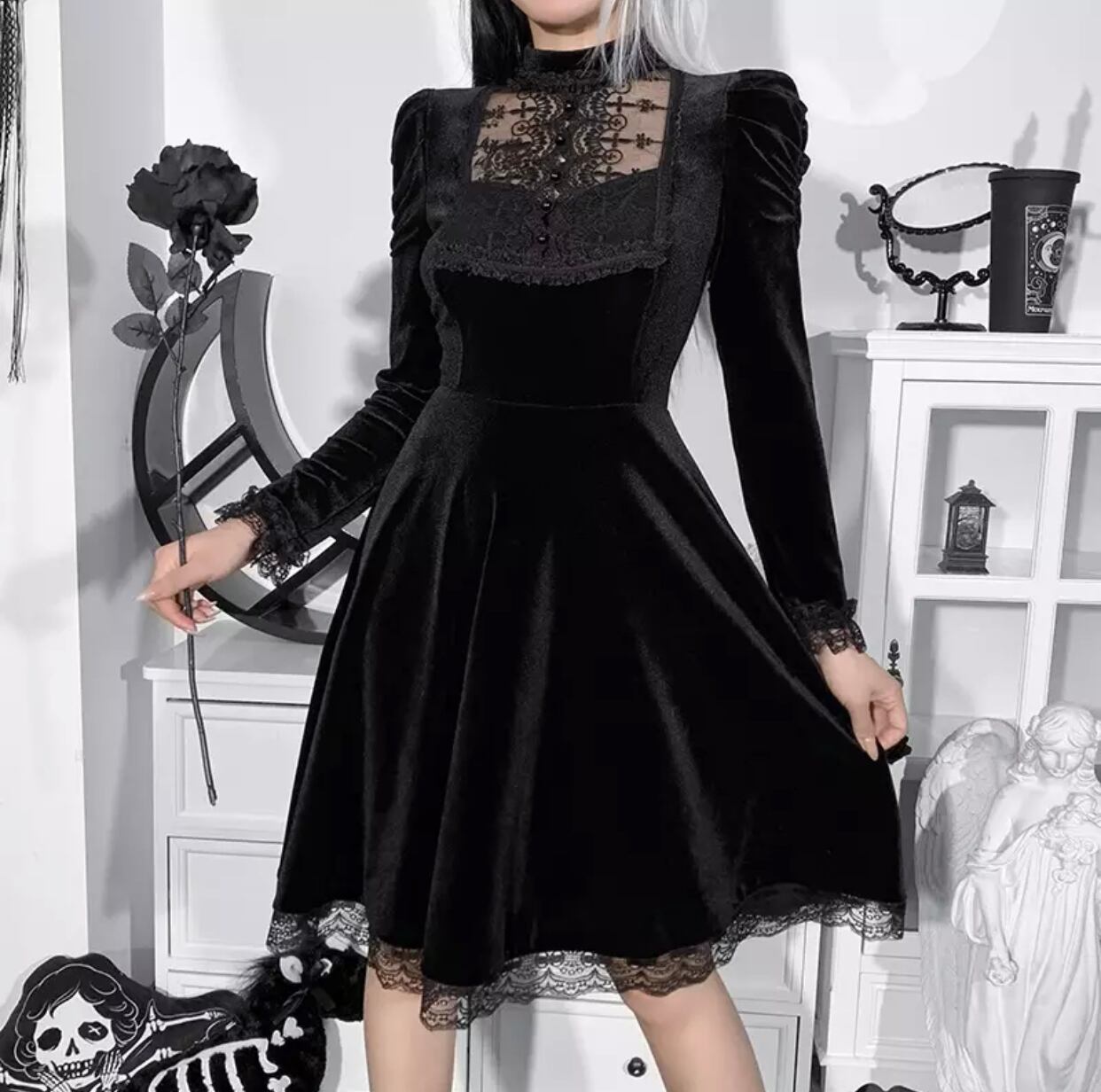 ゴシックドレス エレガント ハイウエスト ゴスロリ パーティー クリスマス