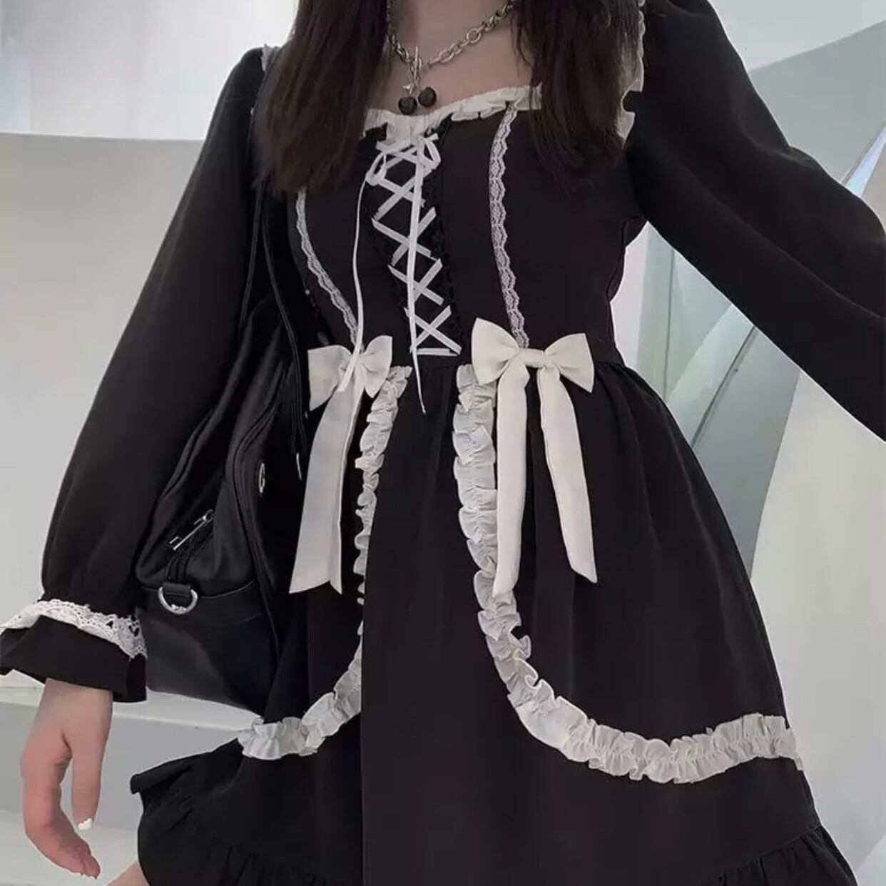 ゴシックミニドレス OP リボン フリル ロリータ ゴシック
