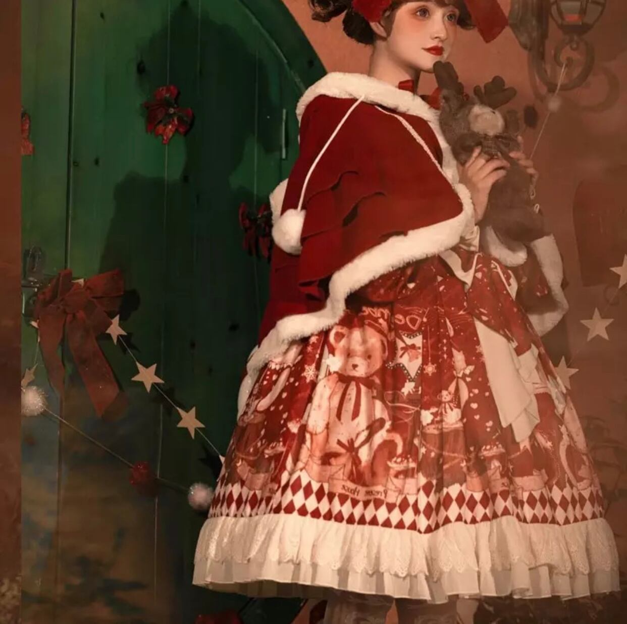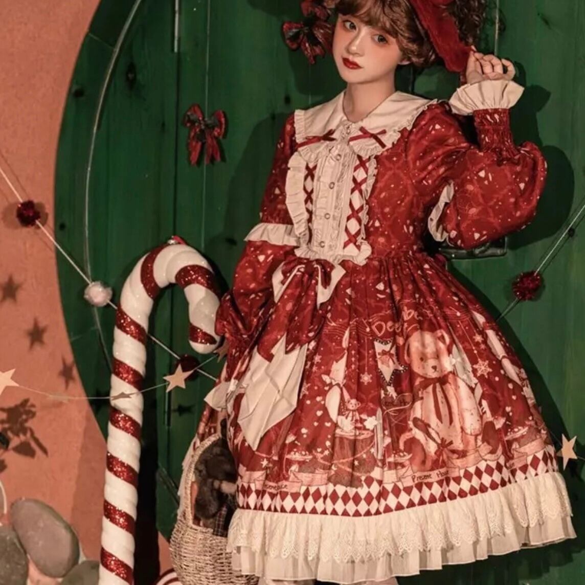 ロリータのクリスマス OP コート リボン フリル ロリータ クリスマス パーティー