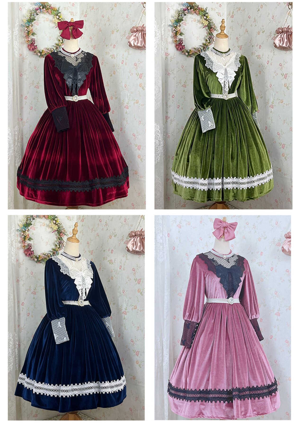 アニーの贈り物 4色展開 ベルベット 長袖ワンピース OP ロリータ クラシック エレガント