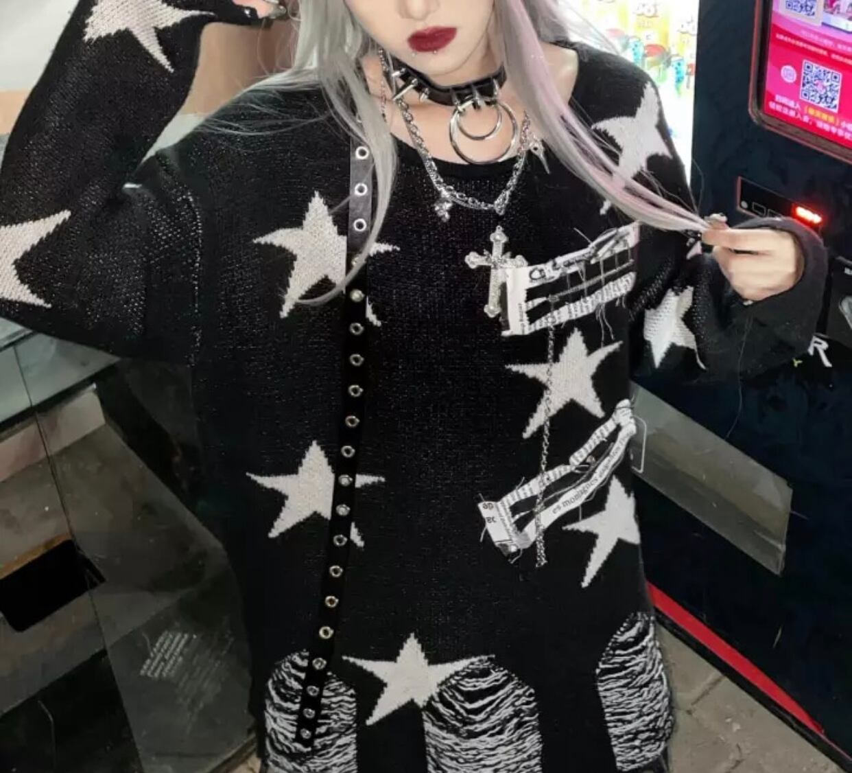 穴あきチェーンセーター ゴシック ヴィンテージ ジッパー付き