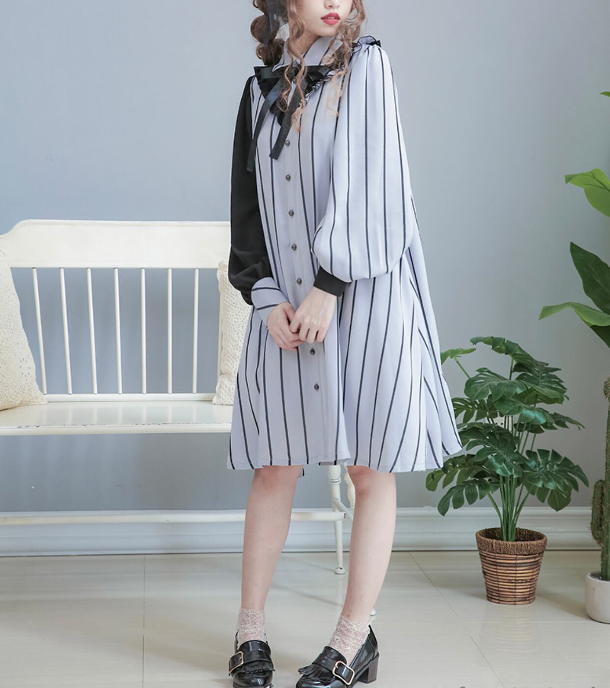 ツインドール カラーブロック ストライプワンピース OP ロリータ ゴシック