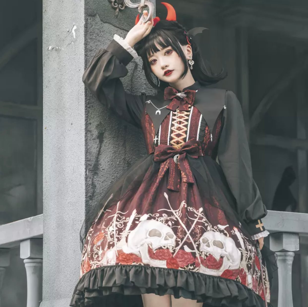 スカル ゴシック ロングスリーブ ロリータドレス コスチューム OP ワンピース