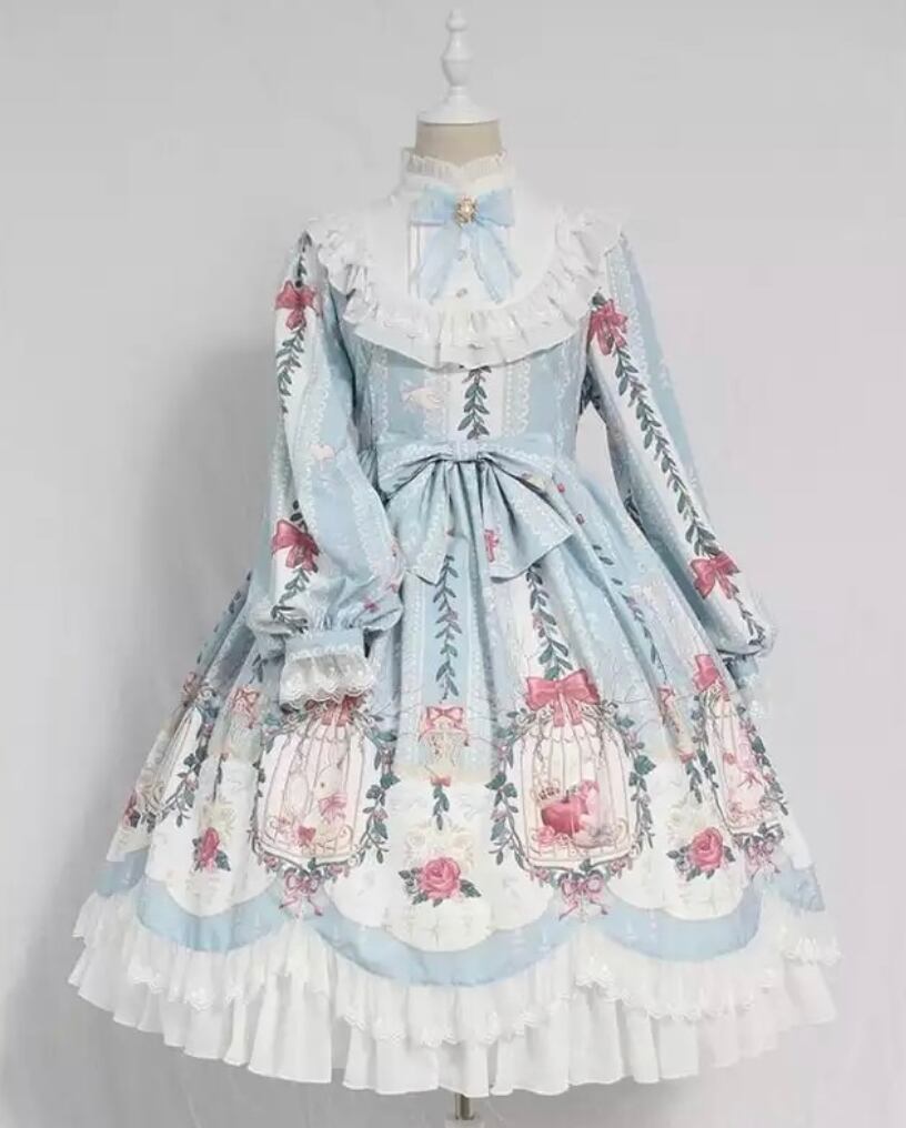 籠の中のうさぎ ロリータドレス フリル 長袖ワンピース OP