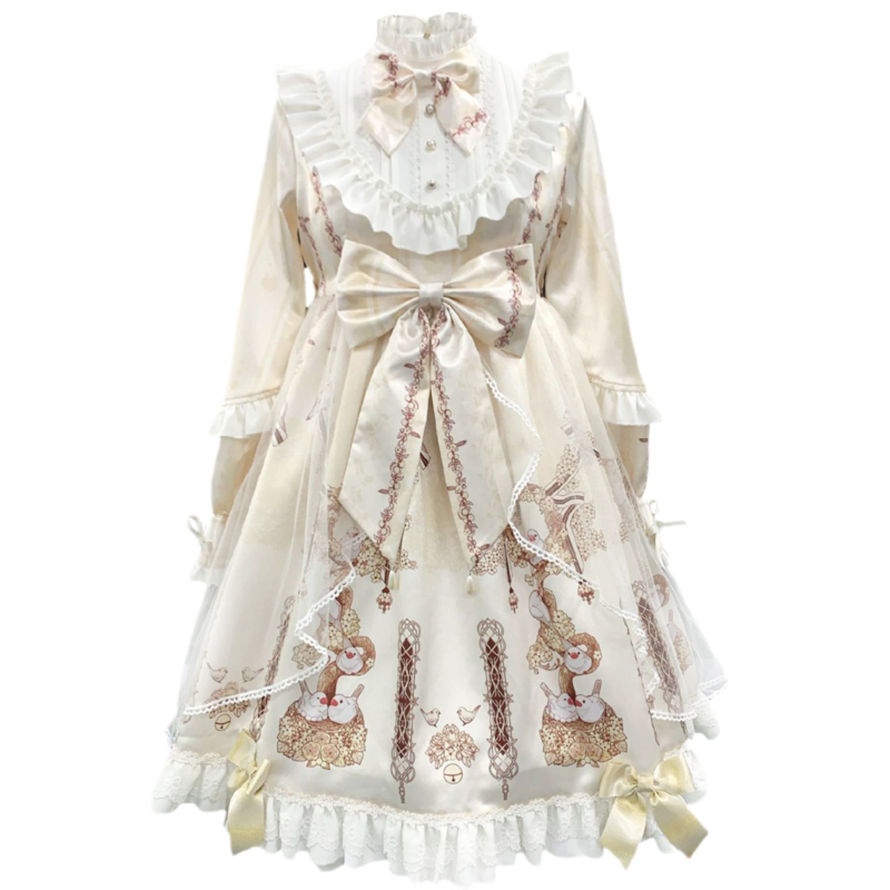 木鳥 プリント ロリータ ワンピース OP
