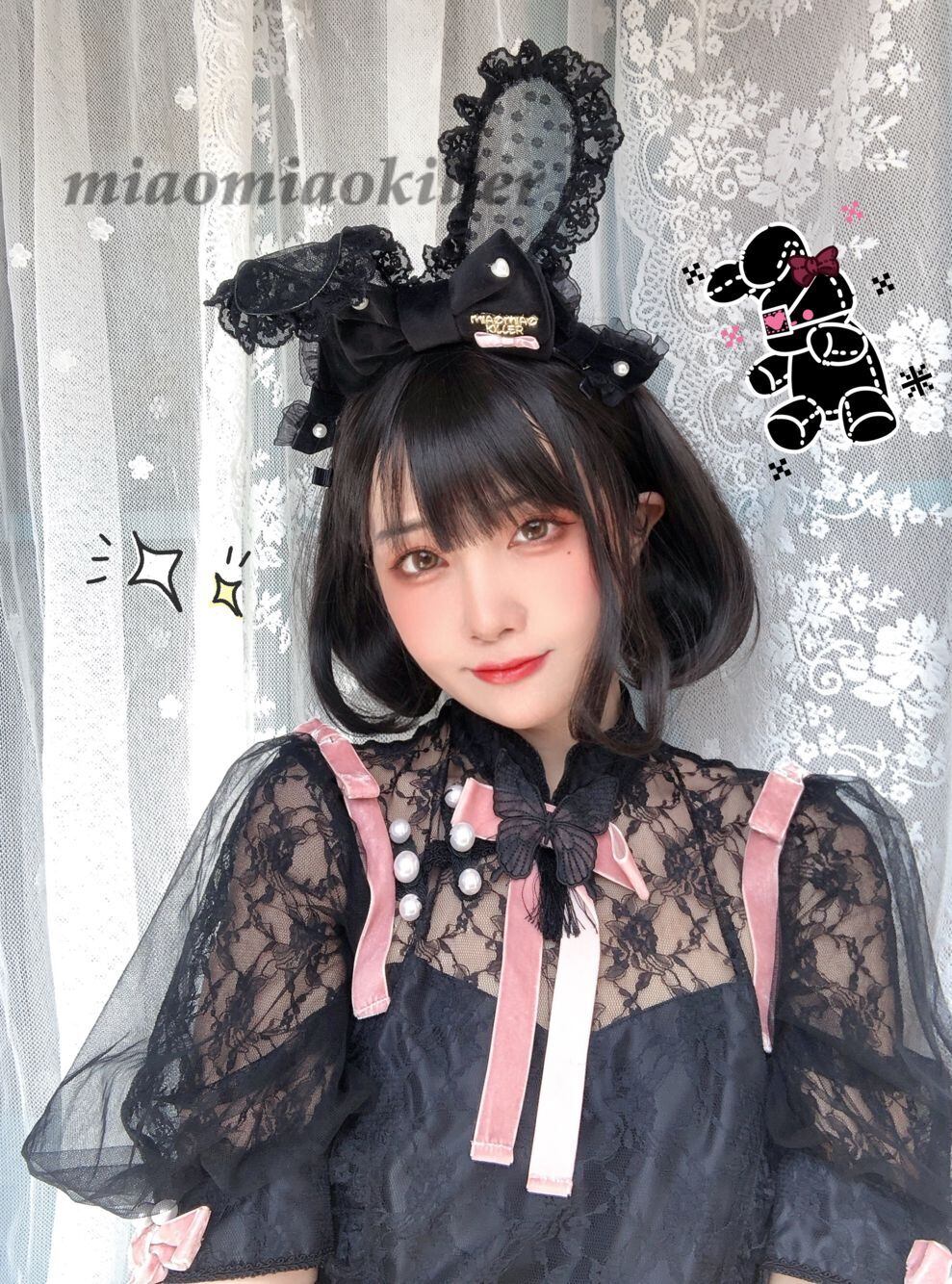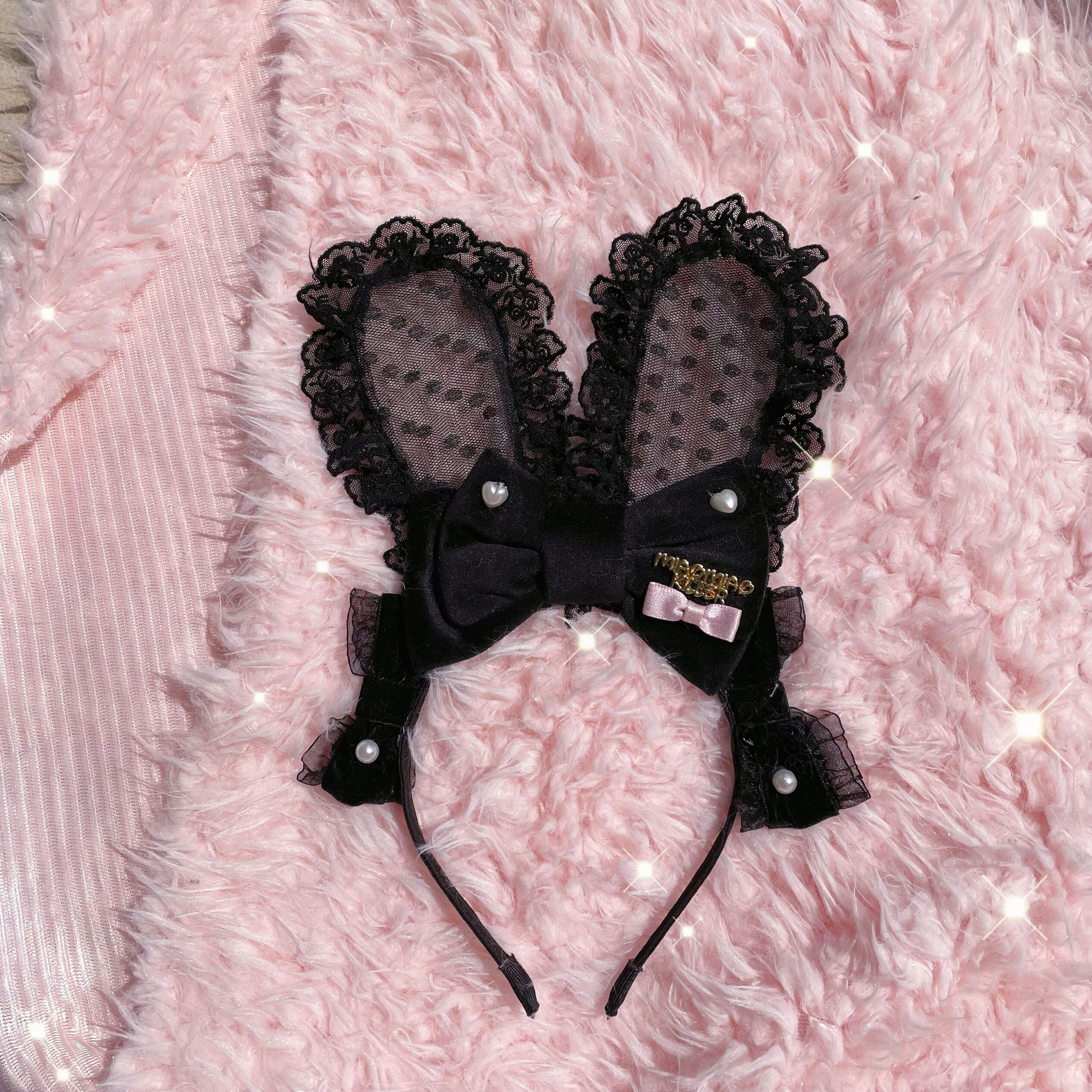 うさぎ耳 カチューシャ レース パール レトロ かわいい ロリータ スウィート ヘアバンド