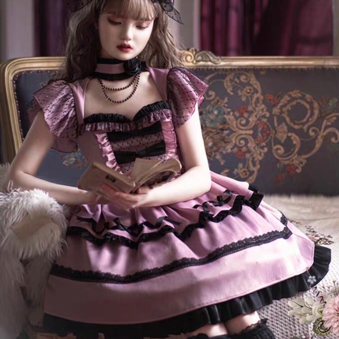 【予約商品】エレガント ステッチ チョーカー フライスリーブ ロリータ ドレス