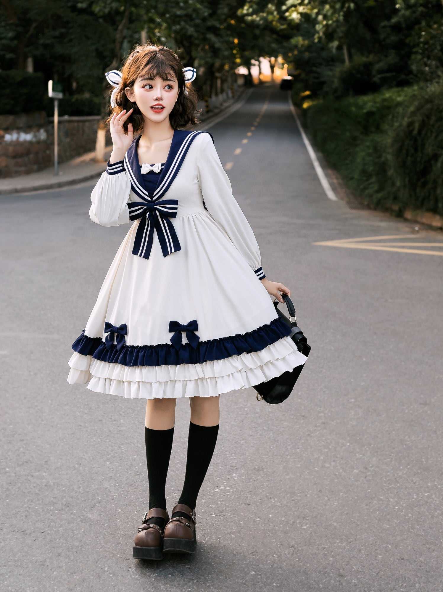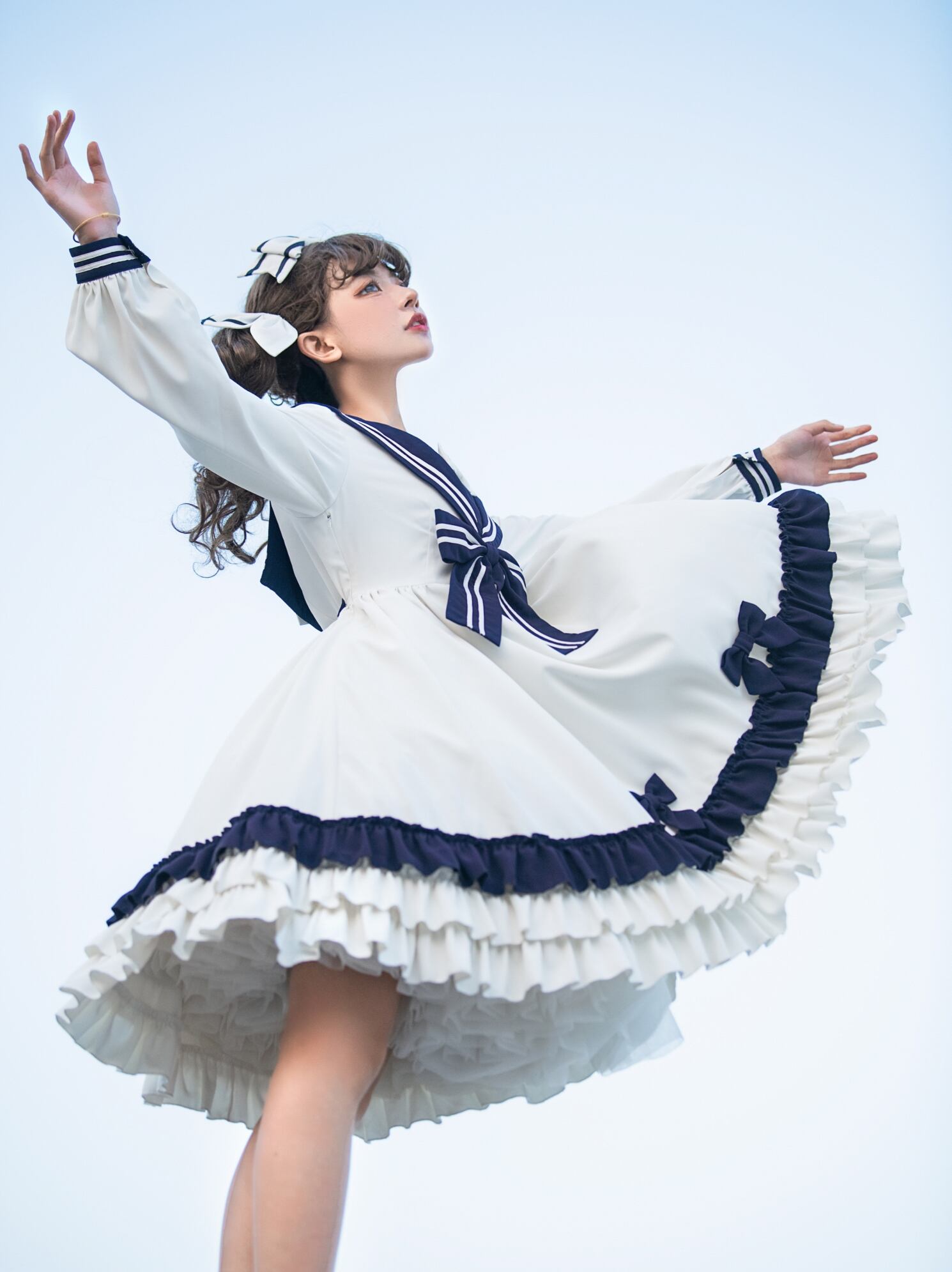 セーラーリーダー スリーブ OP ロリータ デイリードレス