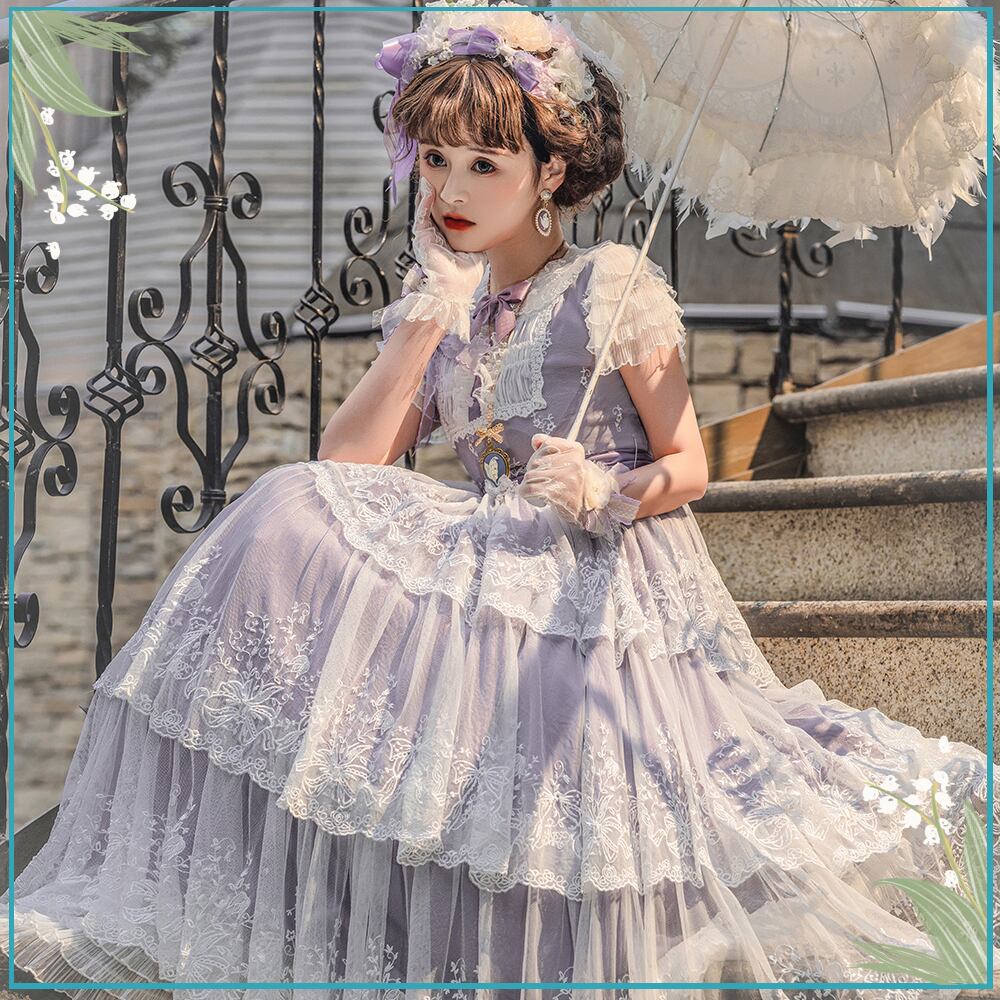 すずらんが咲く道 ロリータ エレガント 刺繍 ラウンドネック OP