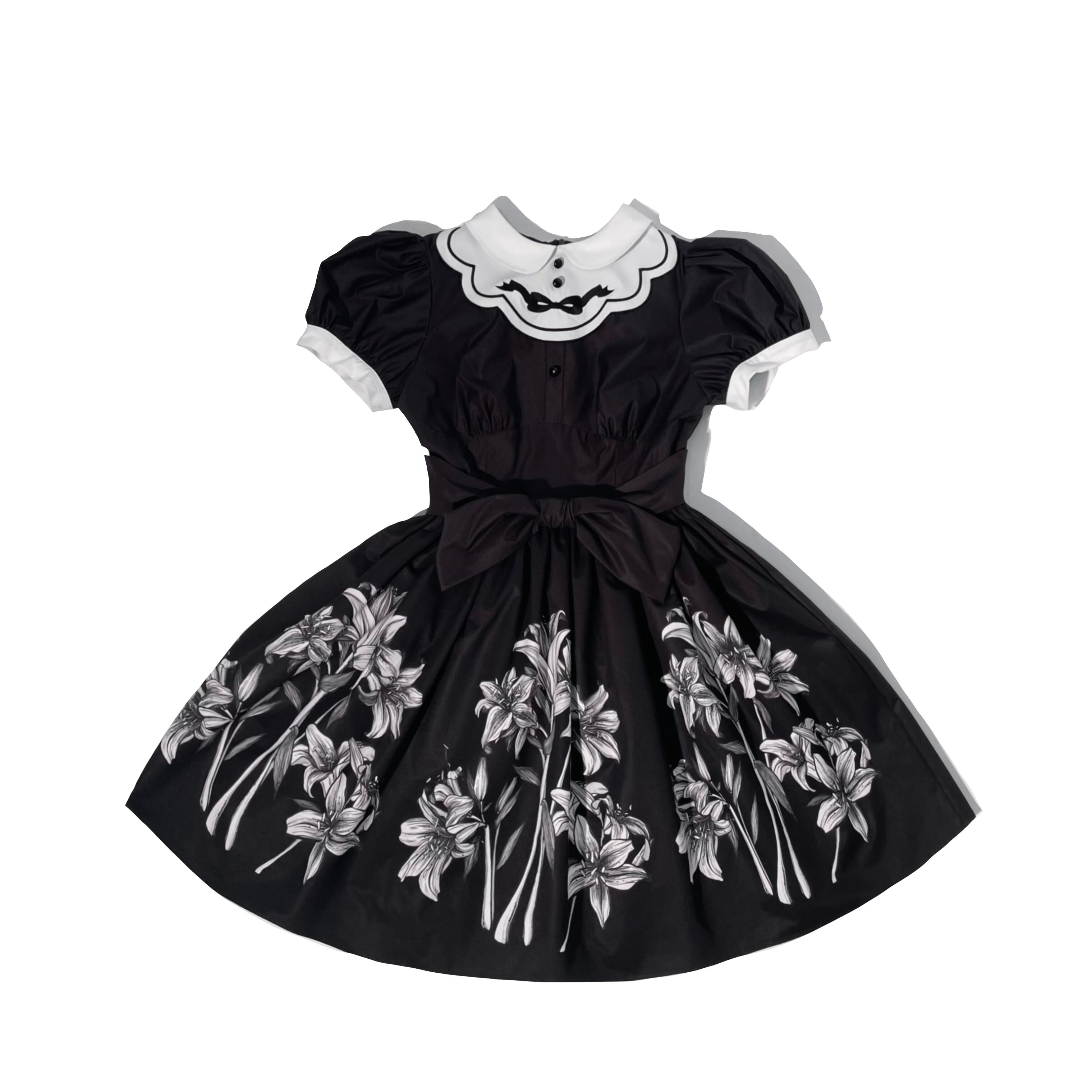 リトルリリー OP ウエストプリント レトロ 刺繍