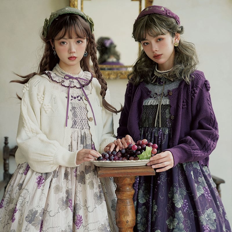 ロワールヴィンヤード OP 真夏 ロリータドレス 長袖 秋冬 エレガントフリル プリント