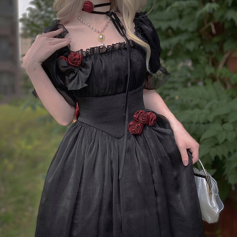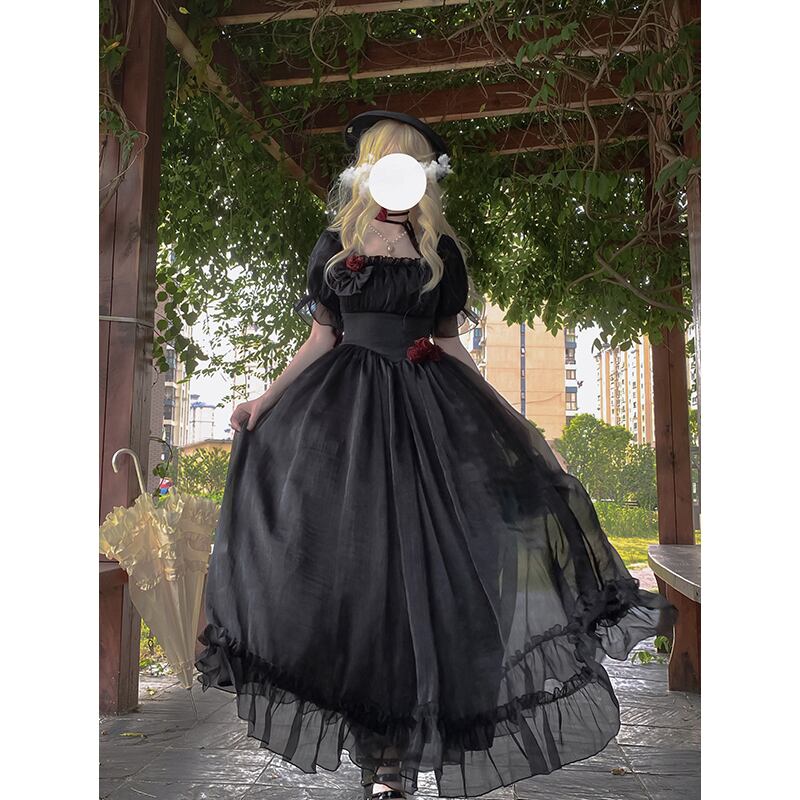 フレンチドレス プリンセススカート ヴィンテージ フェアリー ブラックロングスカート