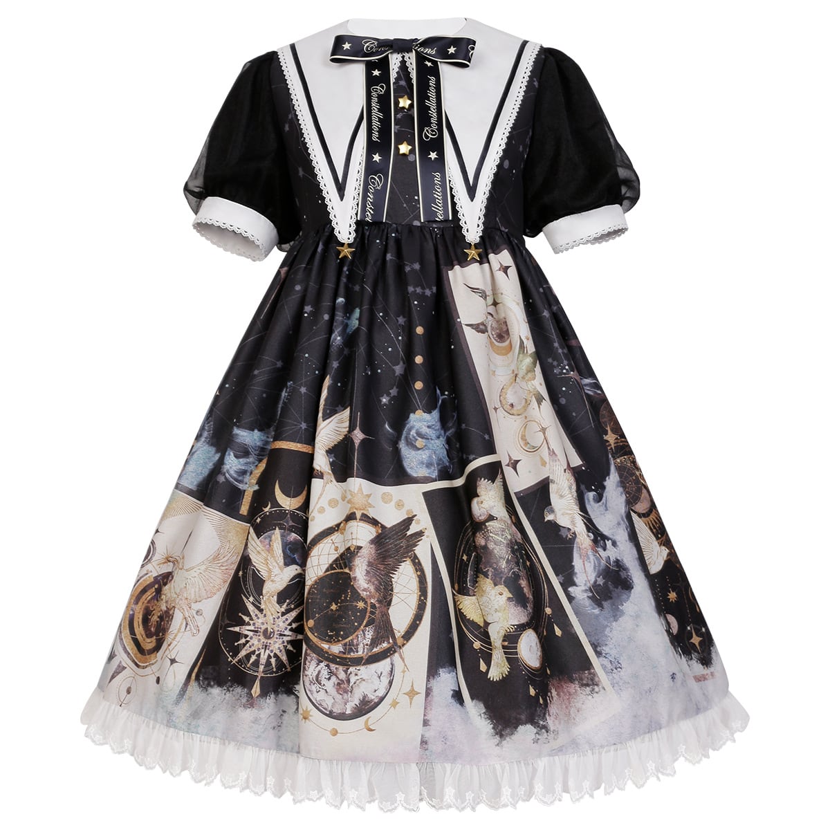星空のスカイ ロリータドレス デイリー ガール ゴス ゴシック様式 半袖 ロリータ オーシャンサマー