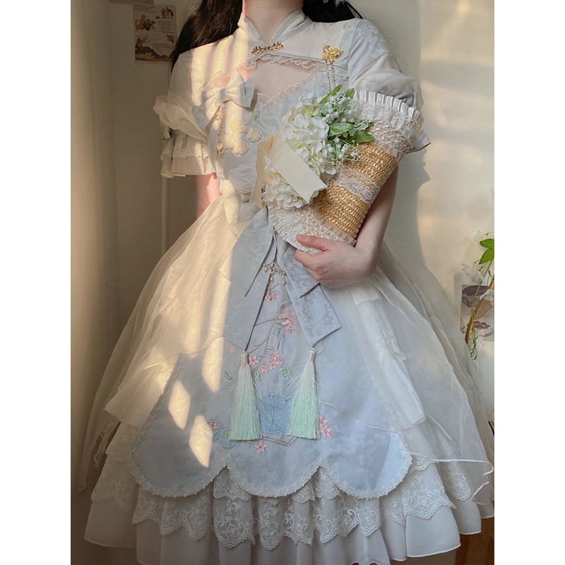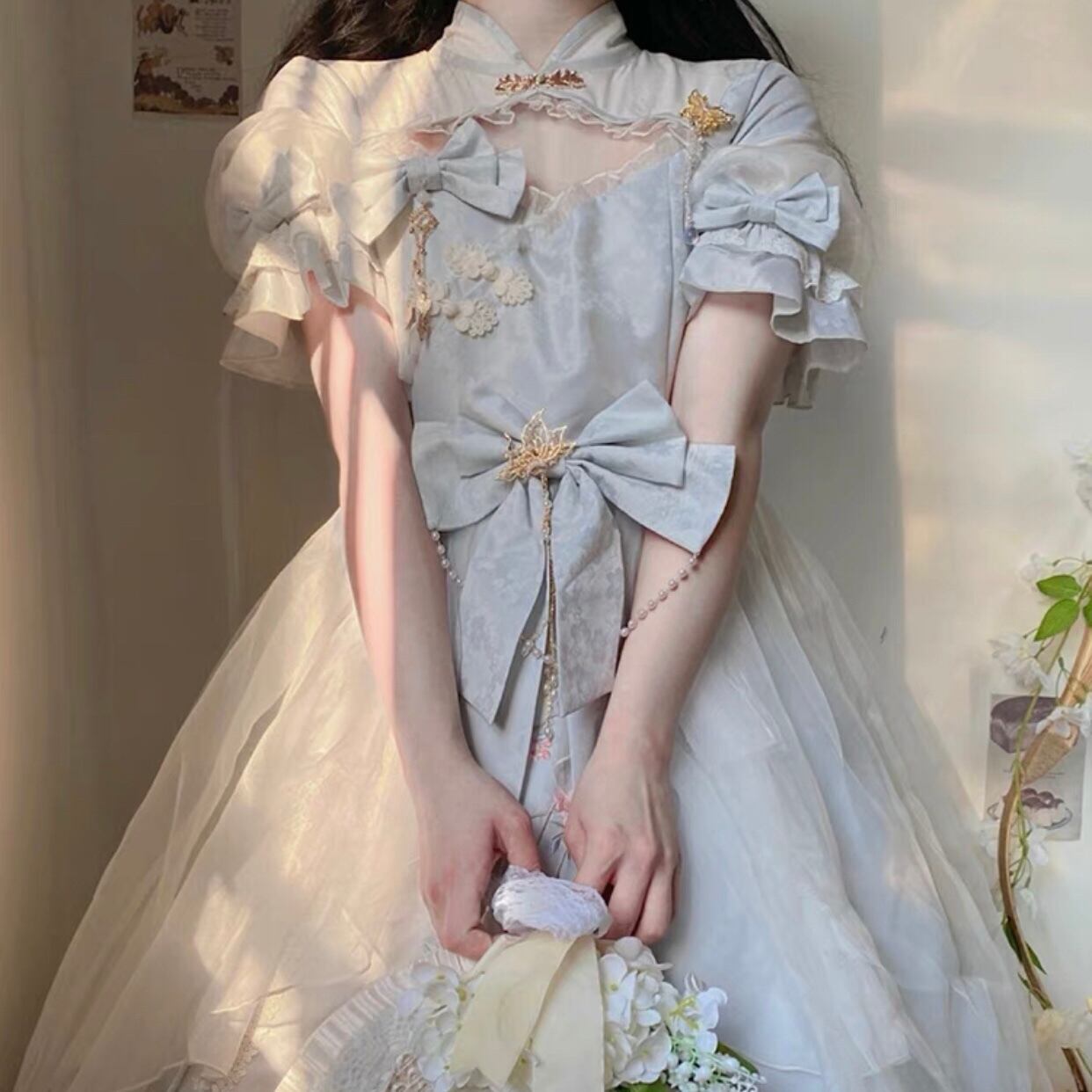 エレガントなロリータドレス ボウショートスリーブ OP ロリータ パフ プリンセススカート