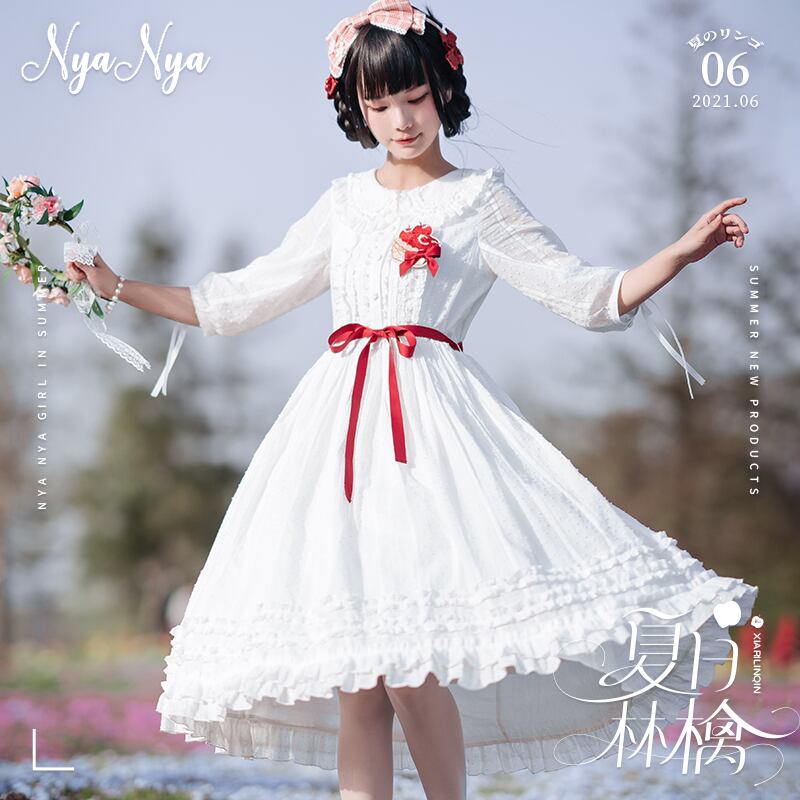 夏りんご ロリータ オリジナル 無地 腰袖 2 着 クルーネック OP