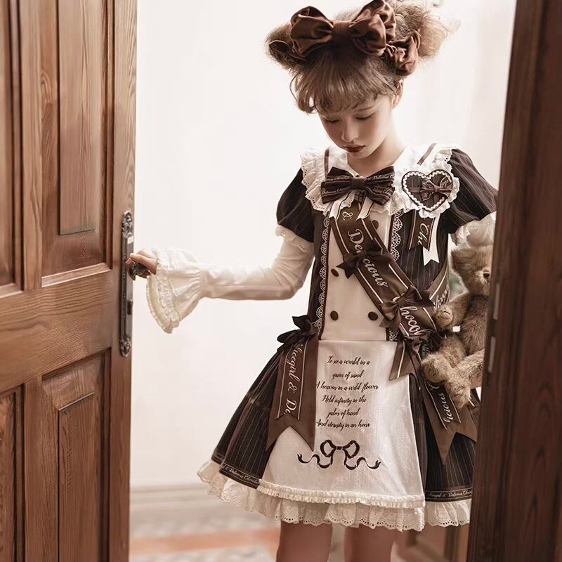 ココアハート ストライプ チョコ ロリータ ローウエスト ドレス