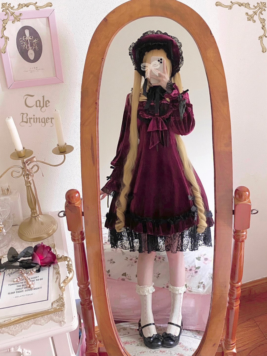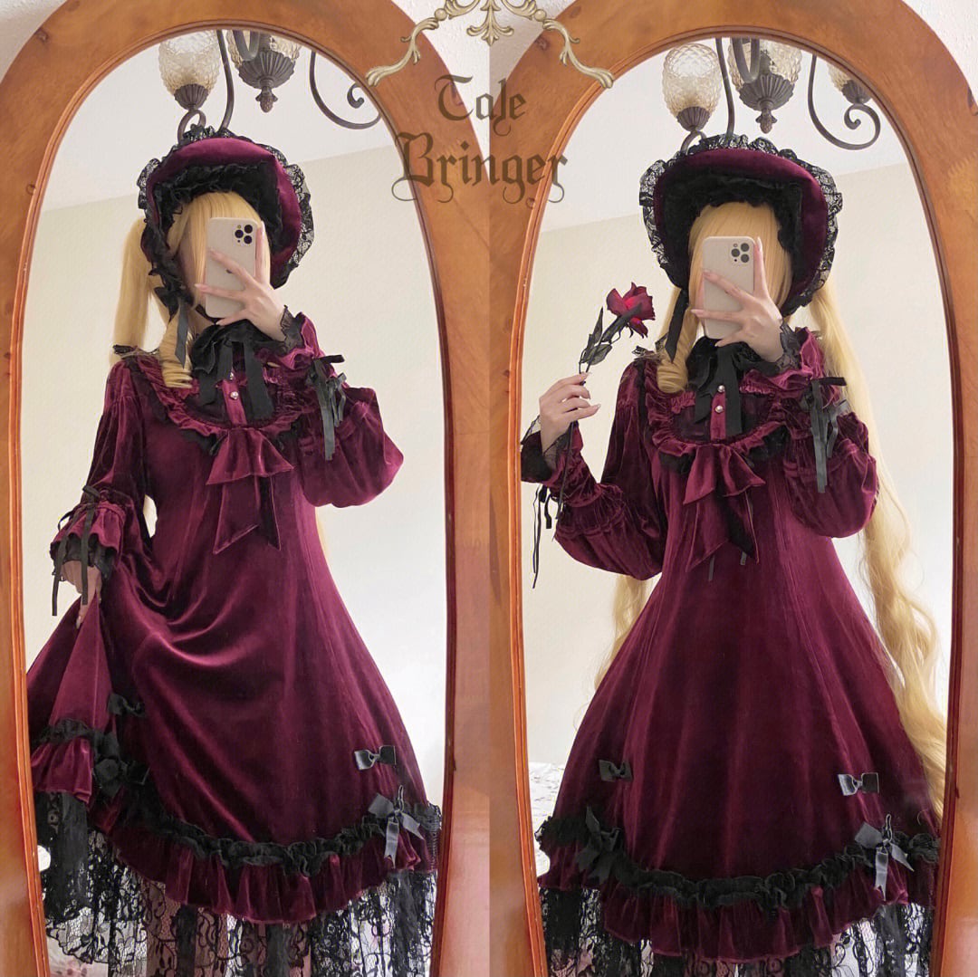 ワインレッド ベルベット ドレス OP ドレッシング ミス ロリータ