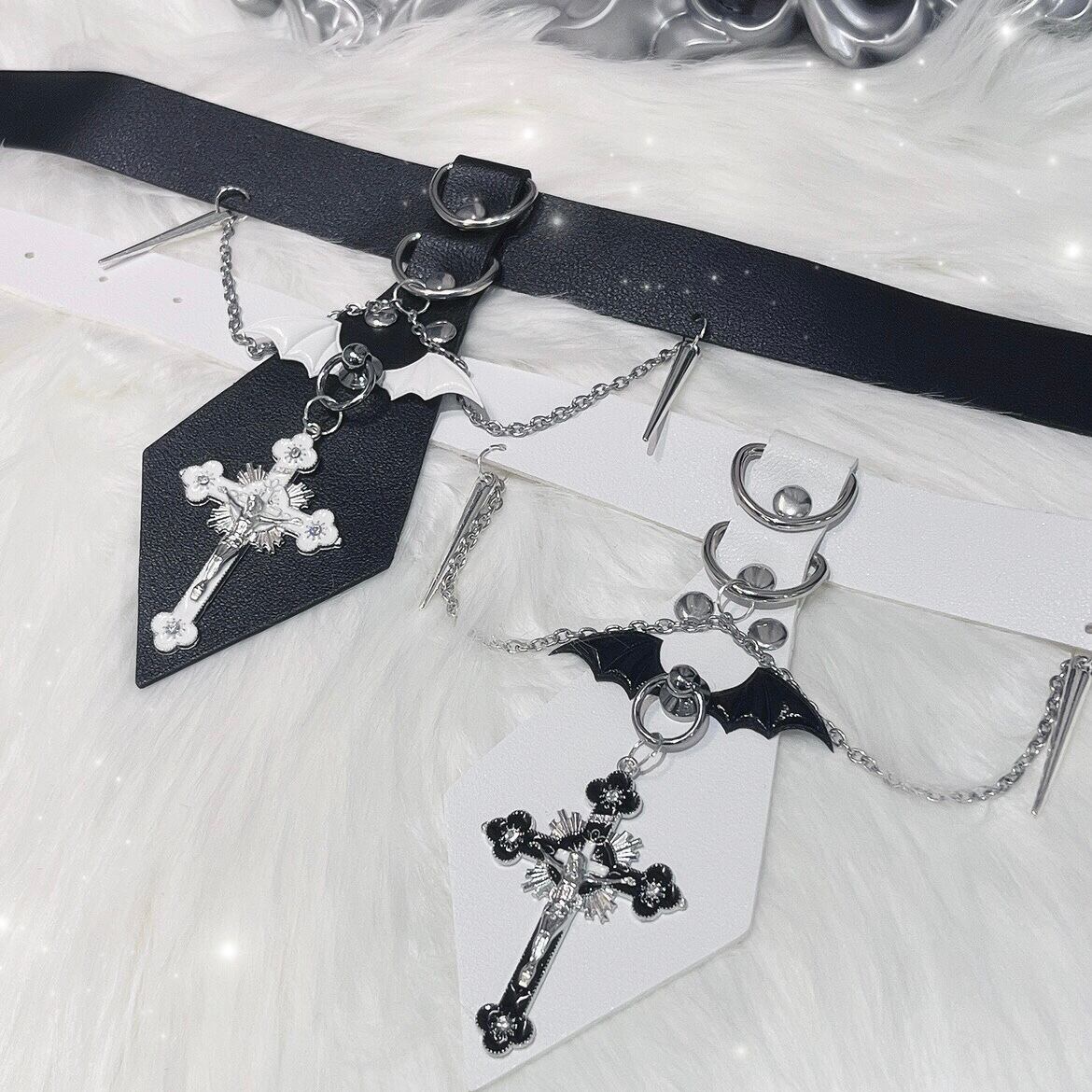 脳研究所 オリジナル パンク 蝙蝠 バット クロス ラックリベット ネックリング ネックレス ネックチェーン