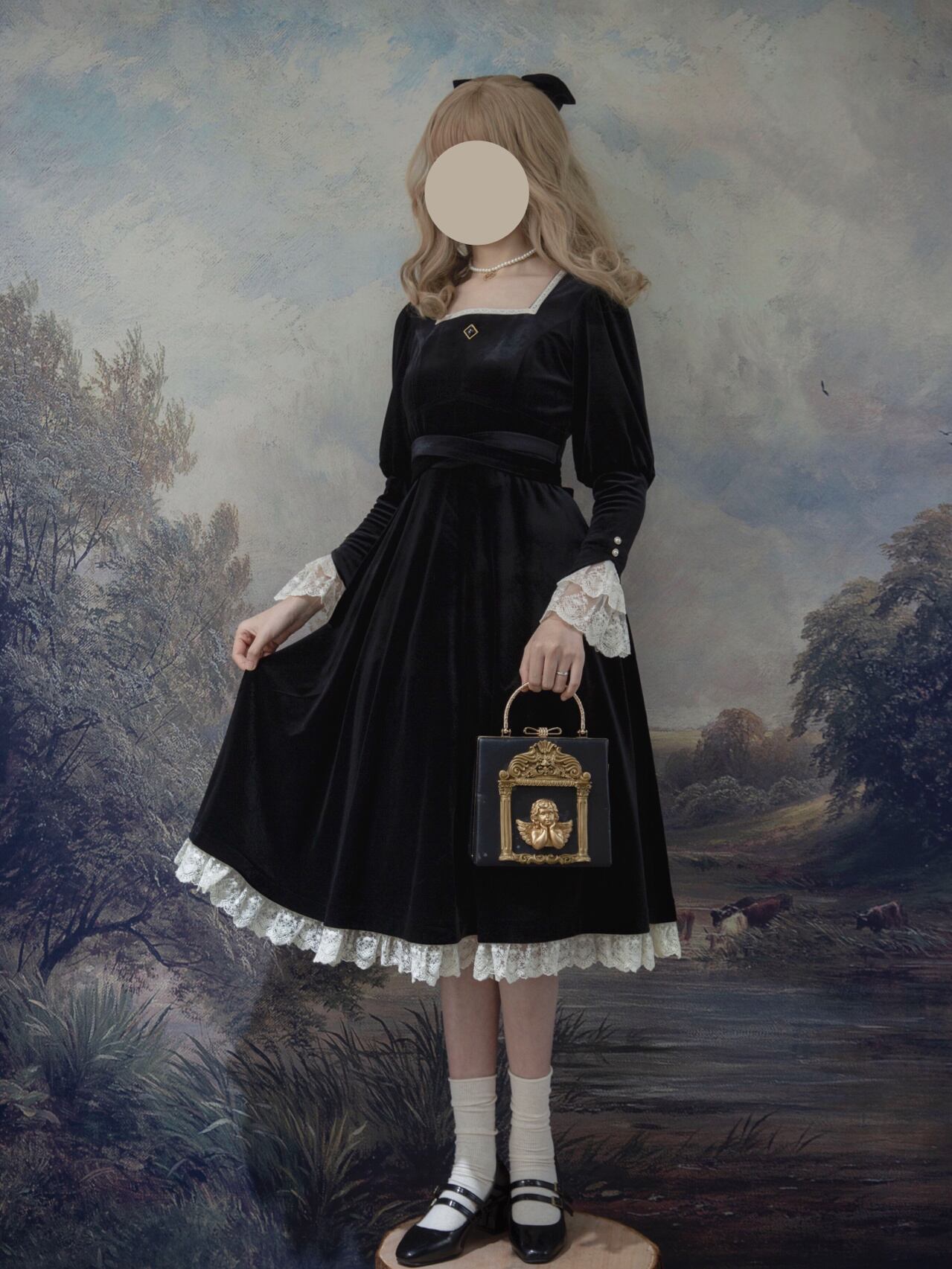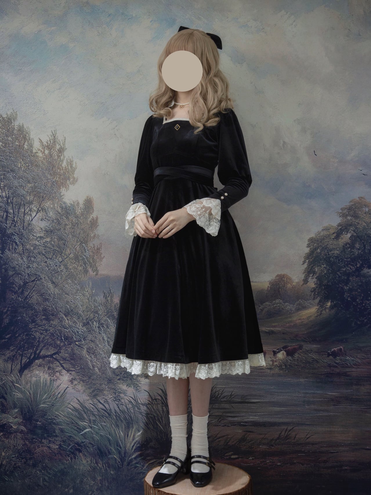 ロリータ ブラック ベルベット OP ドレス 結婚式 エレガント