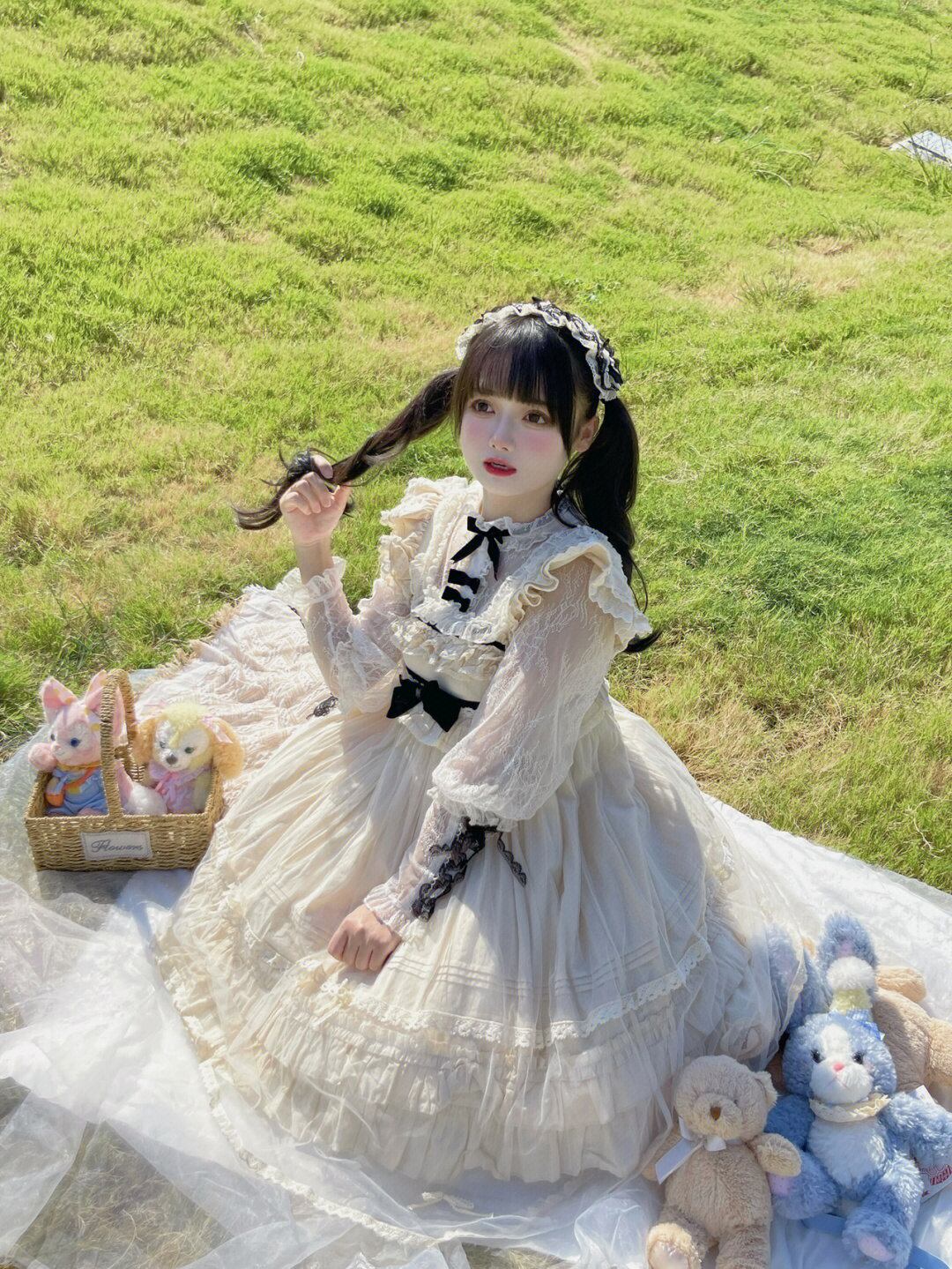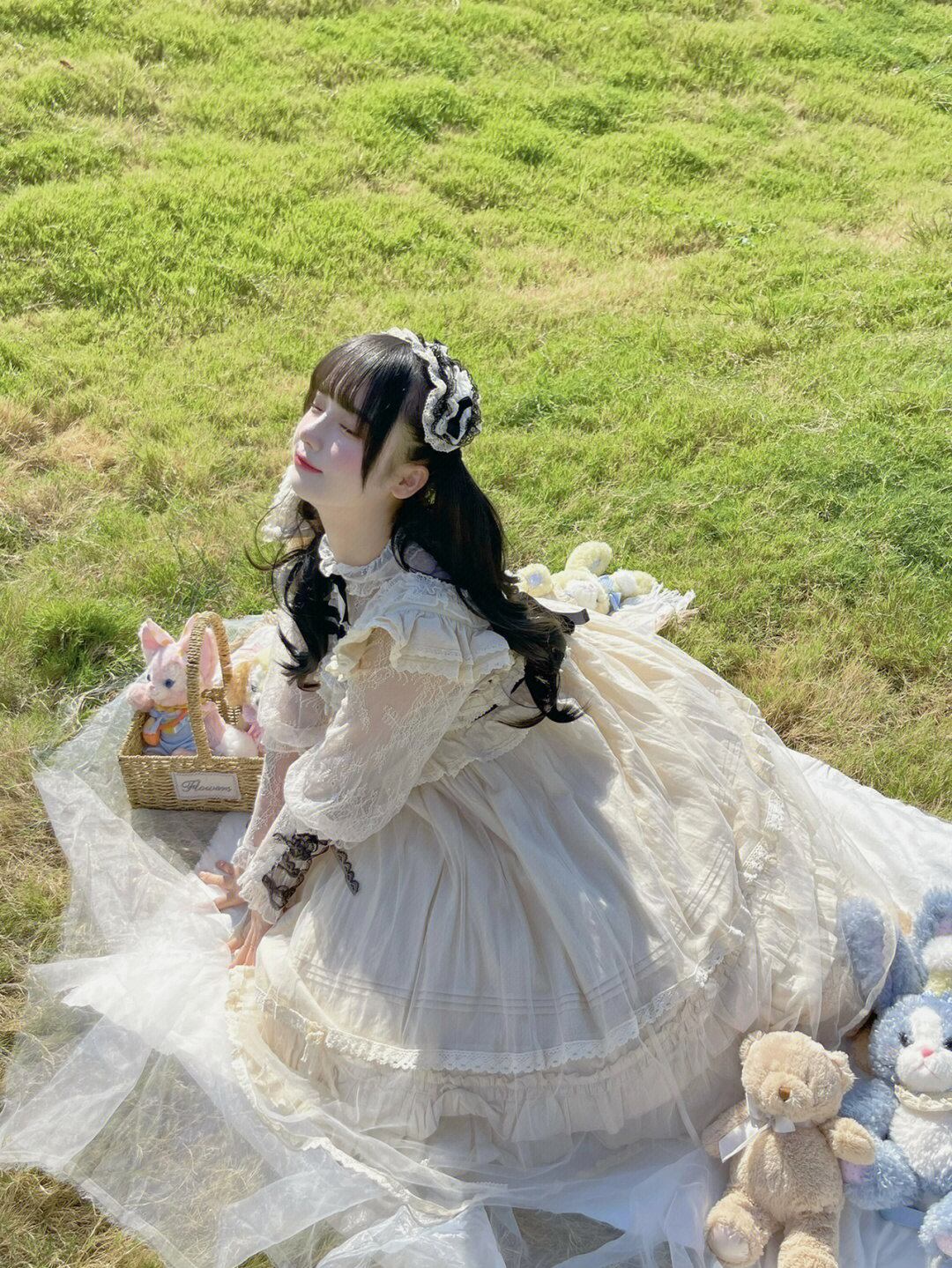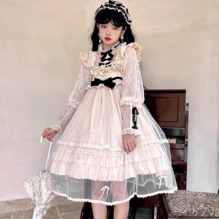 オリジナル ロリータ 生成 JSK ドレス ネットガーゼ ウェディング ドレス ロリータ かわいい 日常