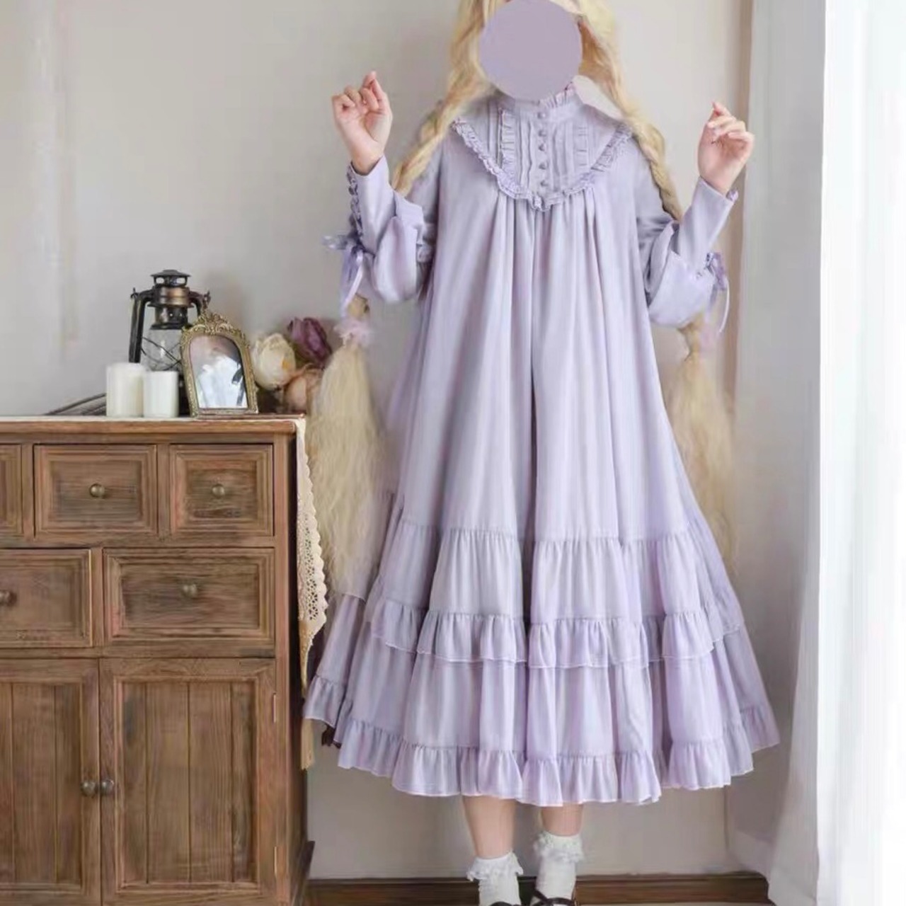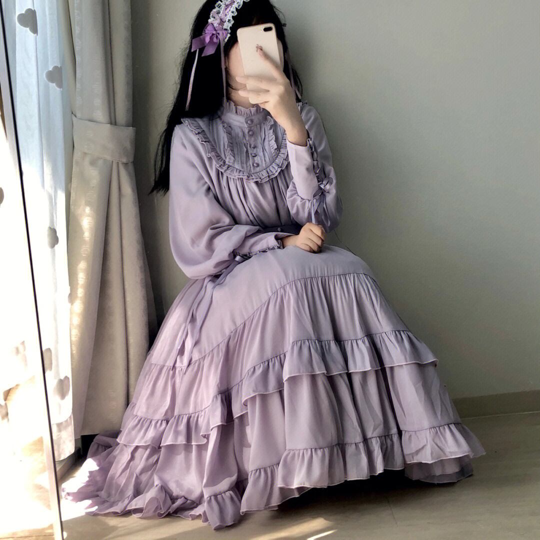 オリジナル ロリータ グレーパープル OP ドレス 甘くてエレガントな日常
