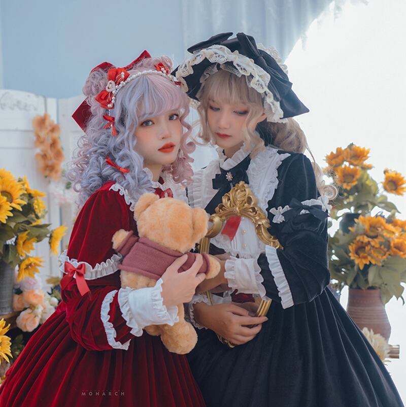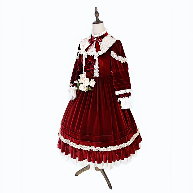 OP オリジナル マリアン ロリータ レトロ フラワーウェディング スカート 秋冬