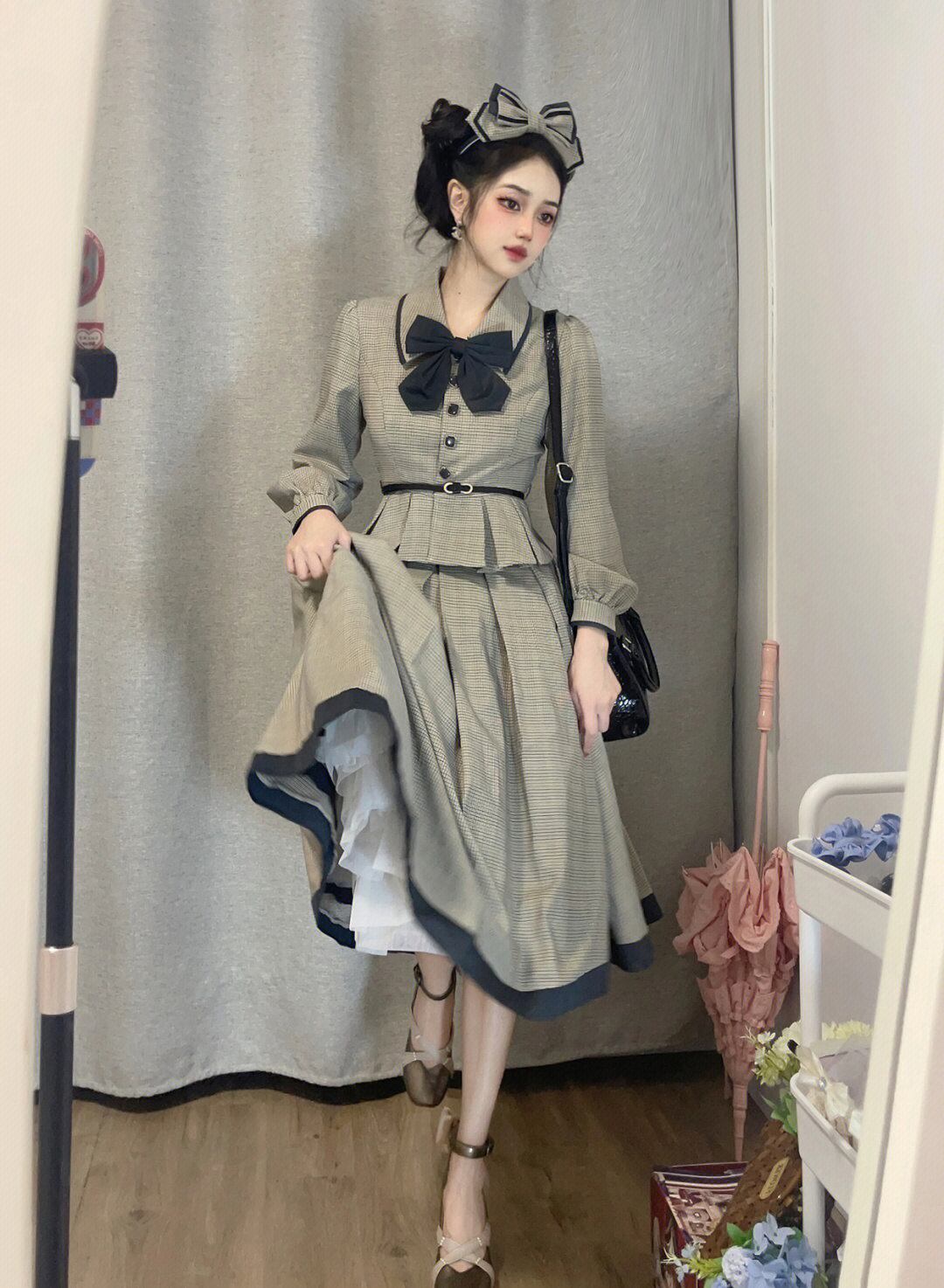 レトロ ロリータ カーキ レディー ロングスカート スーツ エレガント
