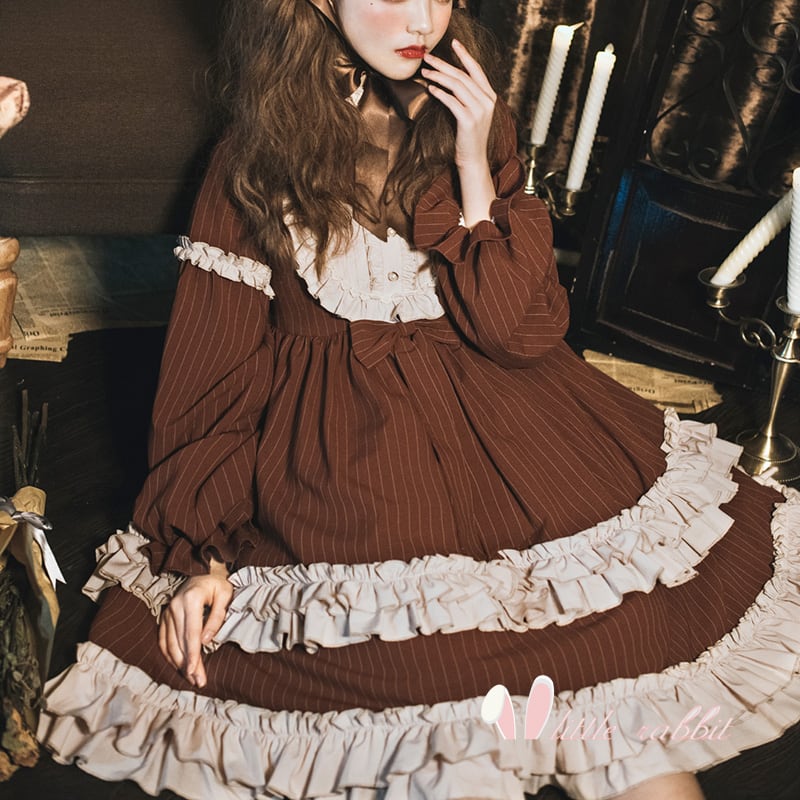オリジナルデザイン ロリータ ドレス ココアミルク ロリータ ソフトガール ヘッドアクセサリー付き