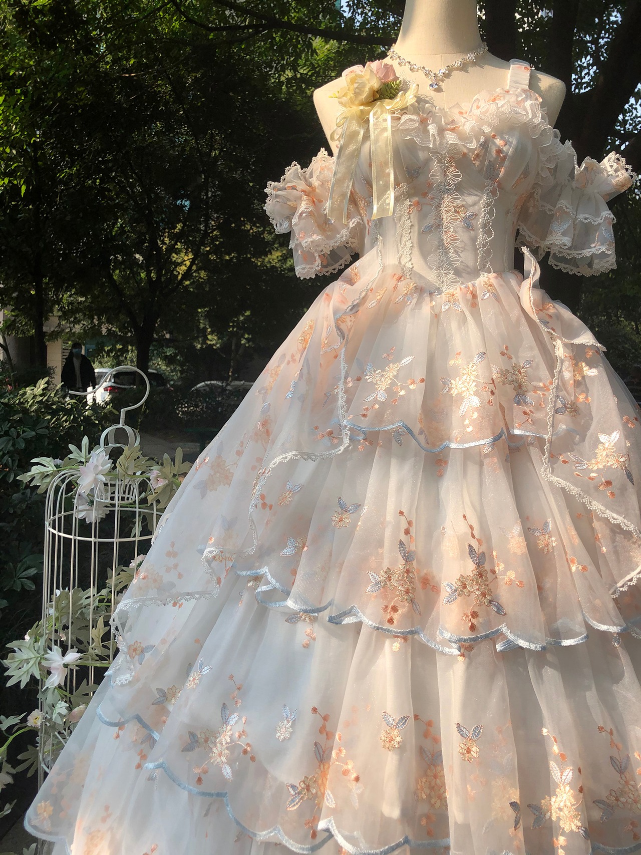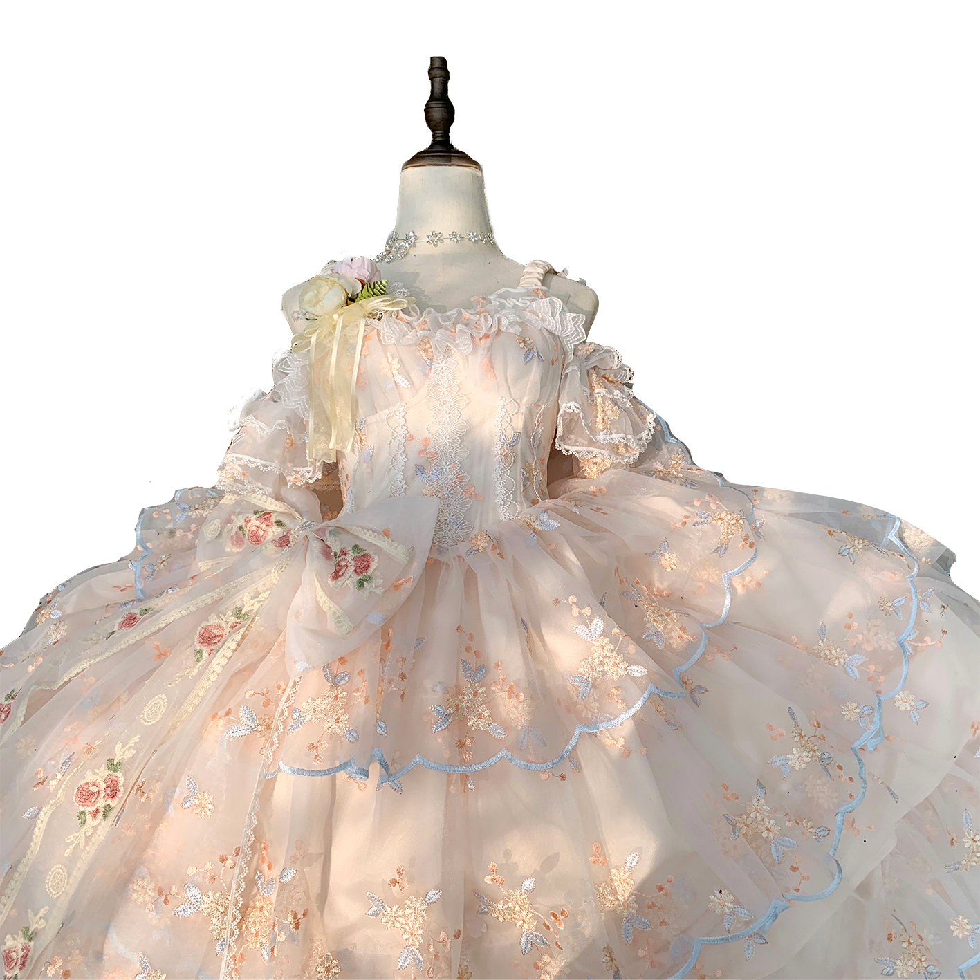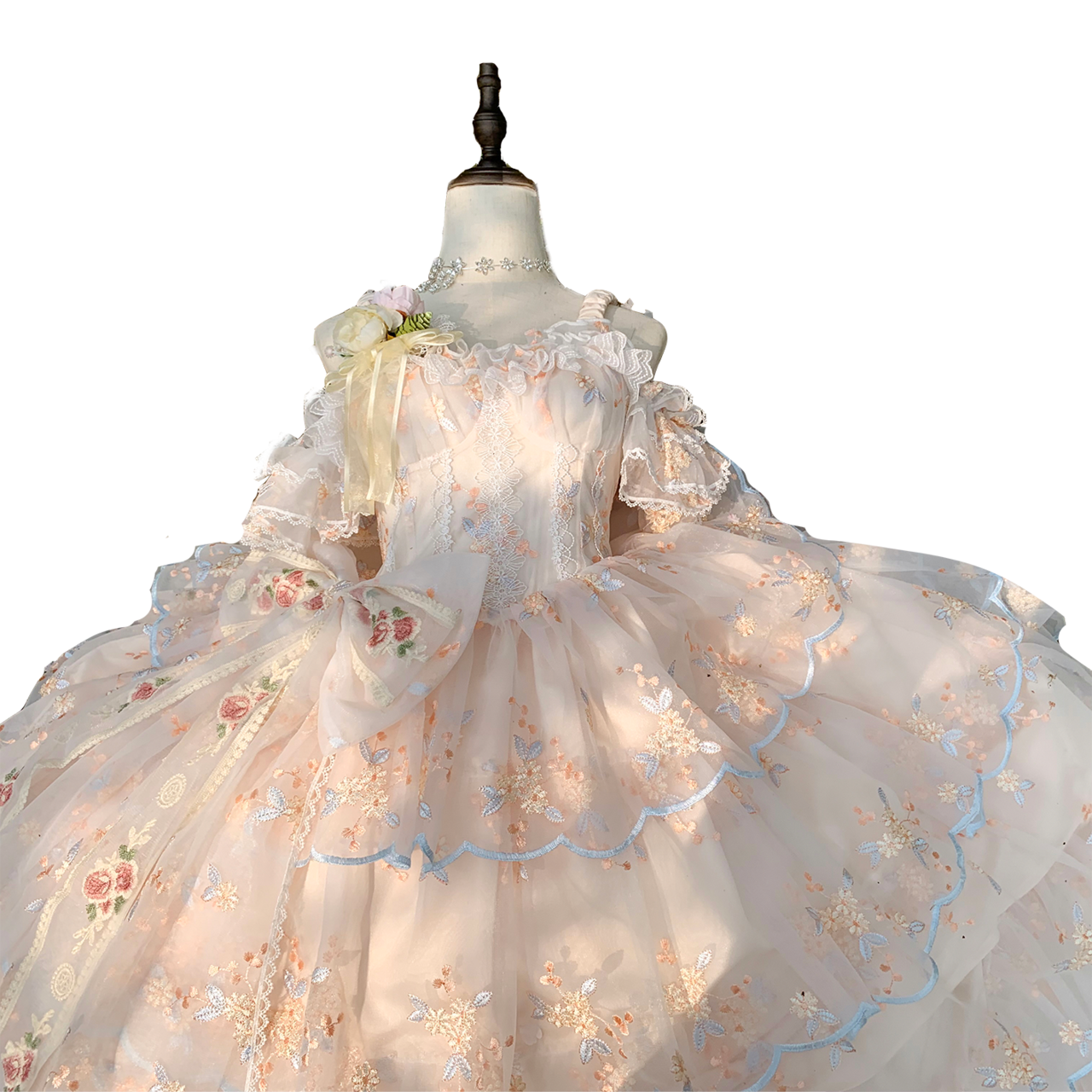 ダイアの花 エレガント クラロリ フレンチ オイルペインティング 刺繍 オリジナル フラワー 結婚 ドレス