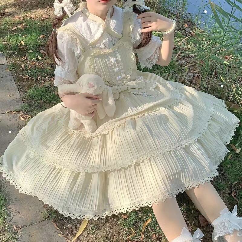 2023夏 ロリータ セット フレッシュ ピュアカラードレス ロリータ JSK キャミソール スイート