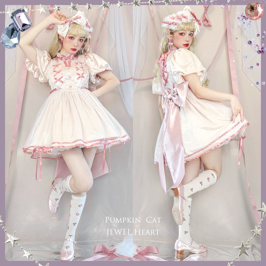 ロリィタ ワンピース カボチャ猫 ジュエルハート ジェムストーン ハート ロリータ ドレスop