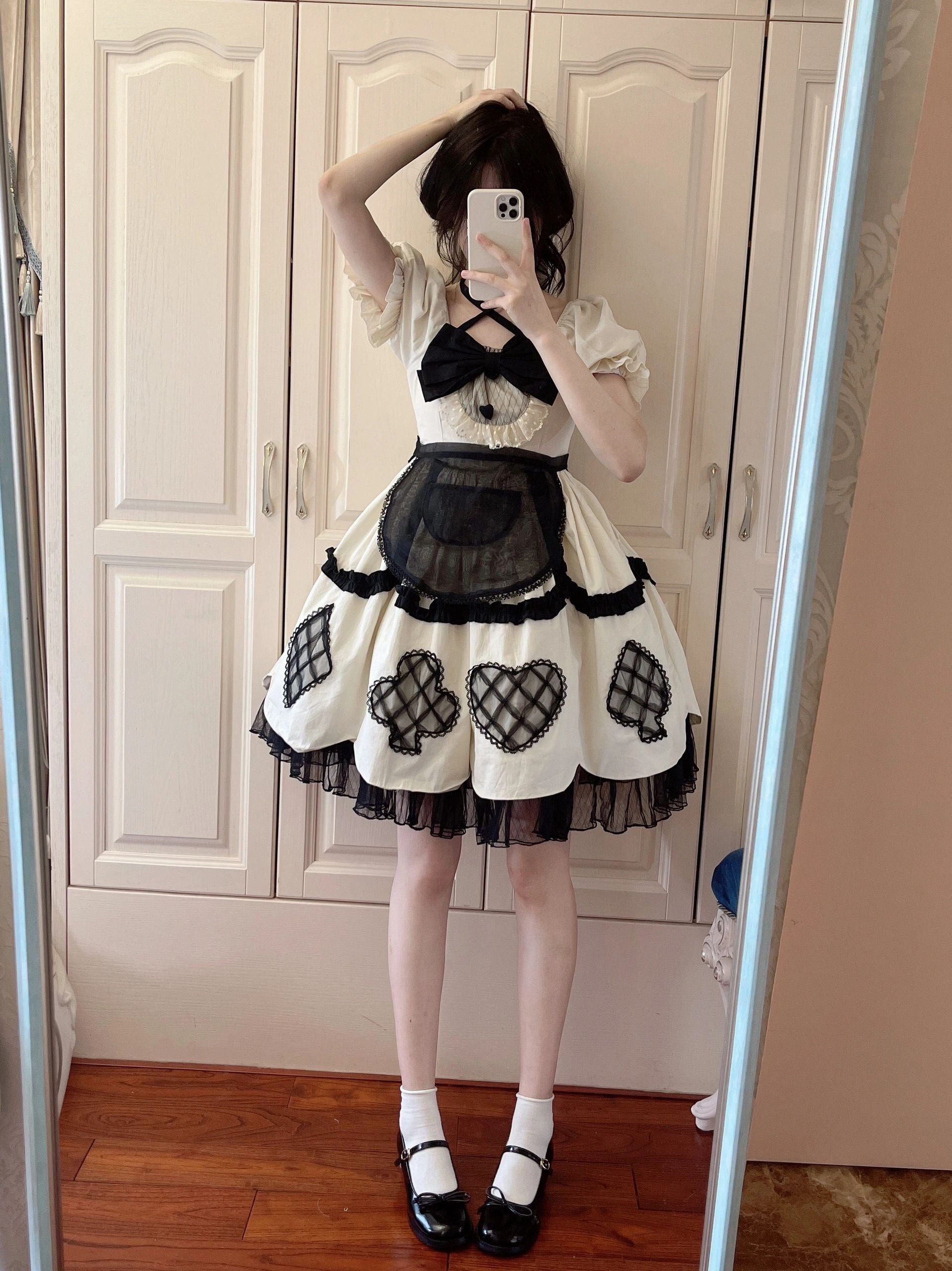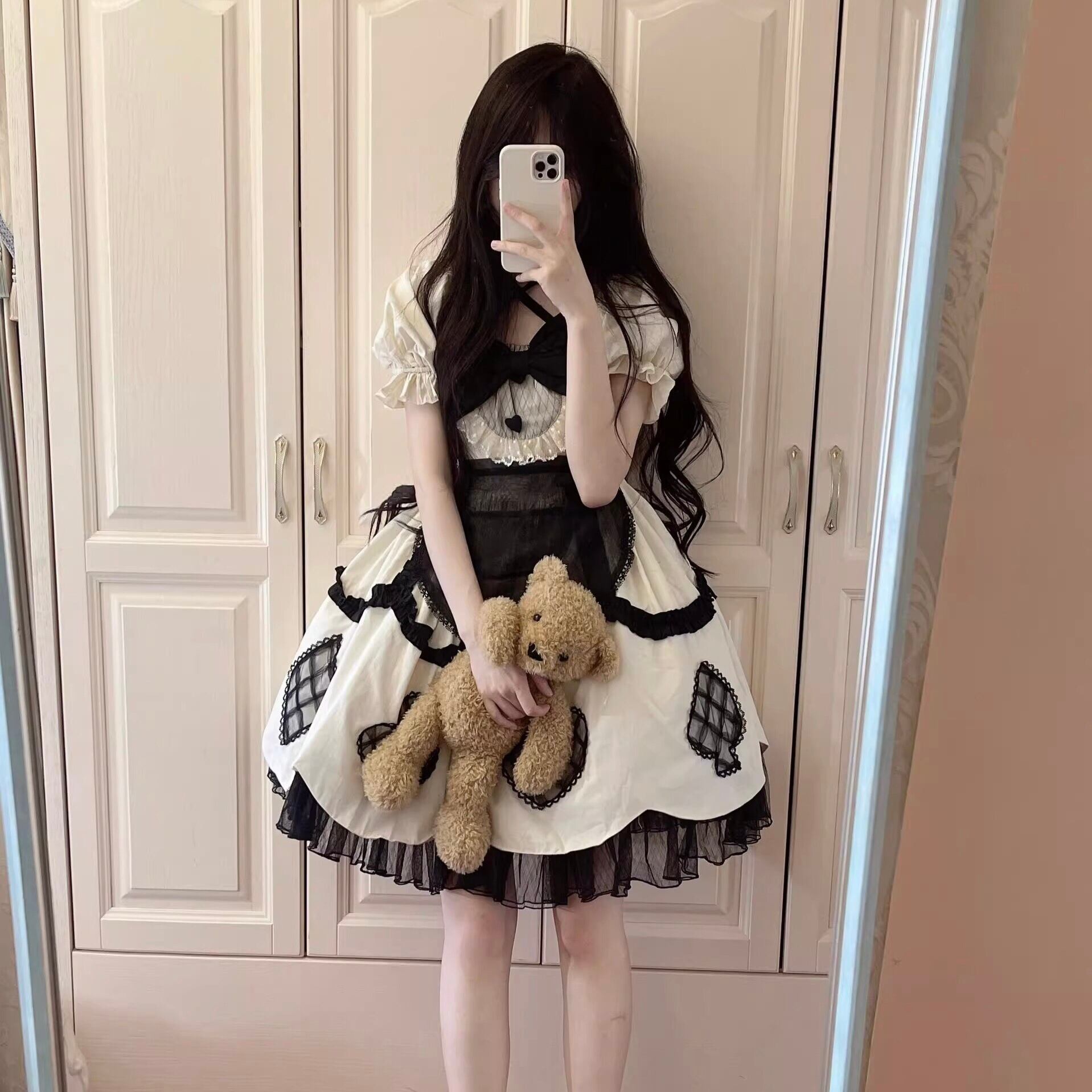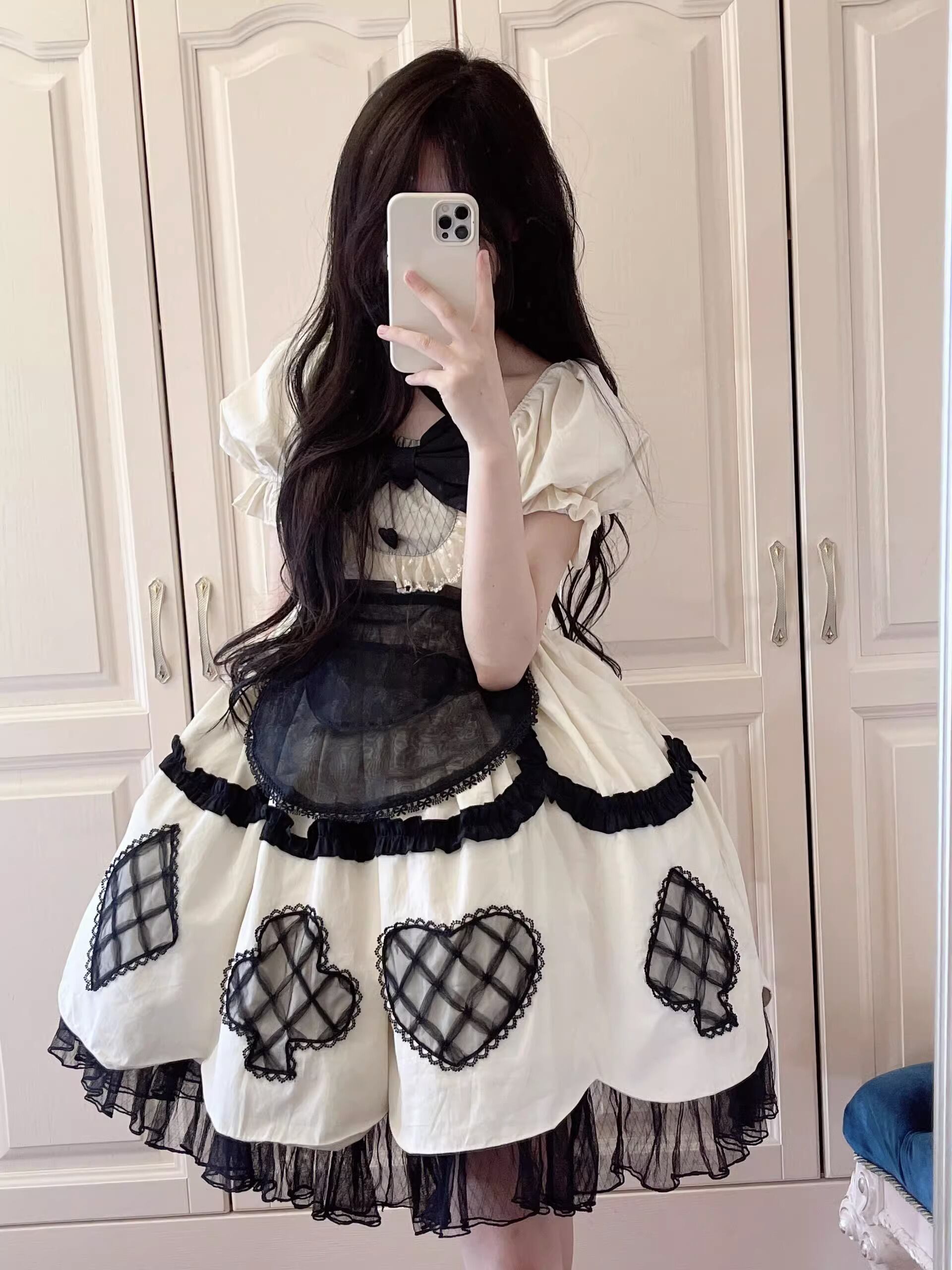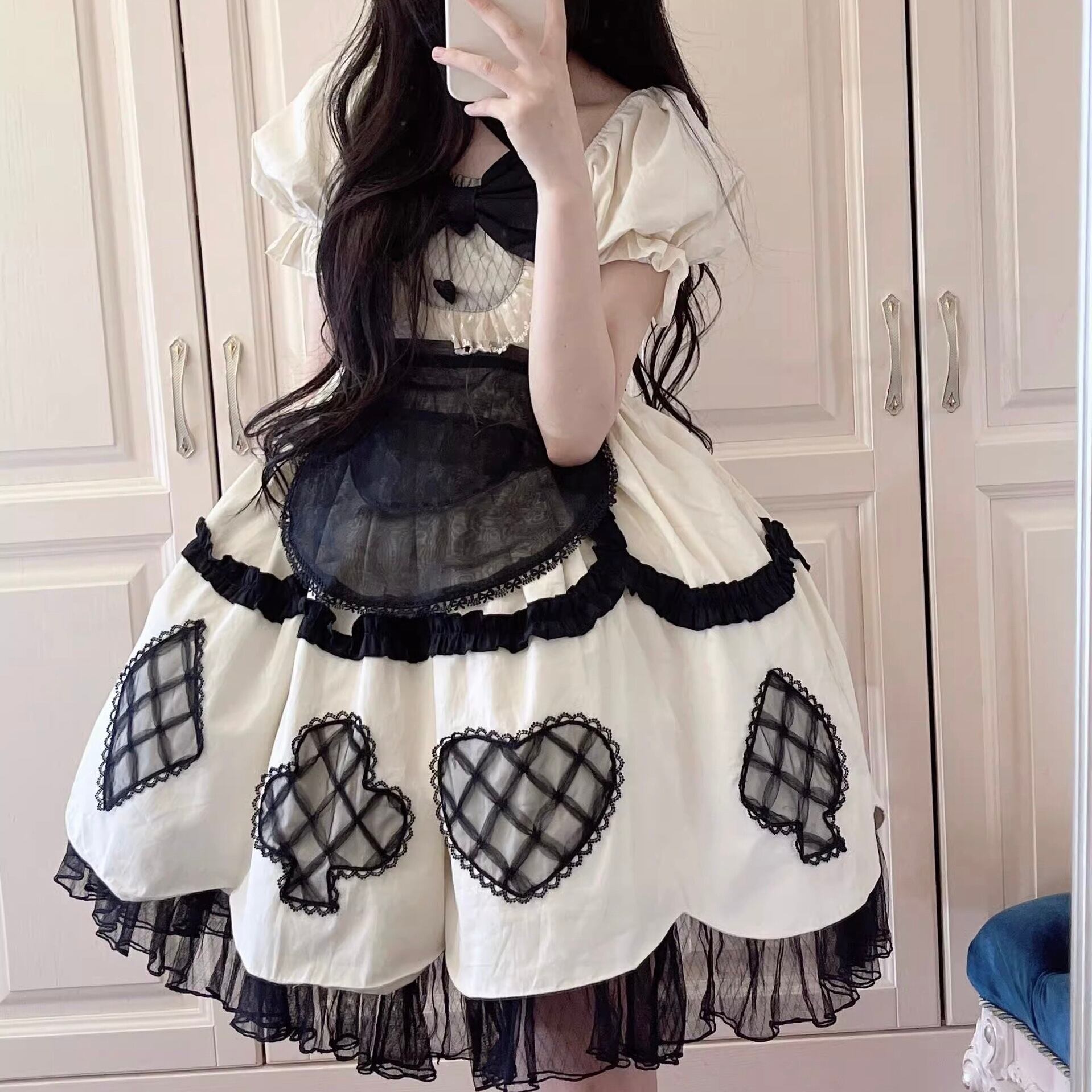バブルスリーブドレス ロリータ ラブ ネットヤーン ガーゼ パフプリンセススカート