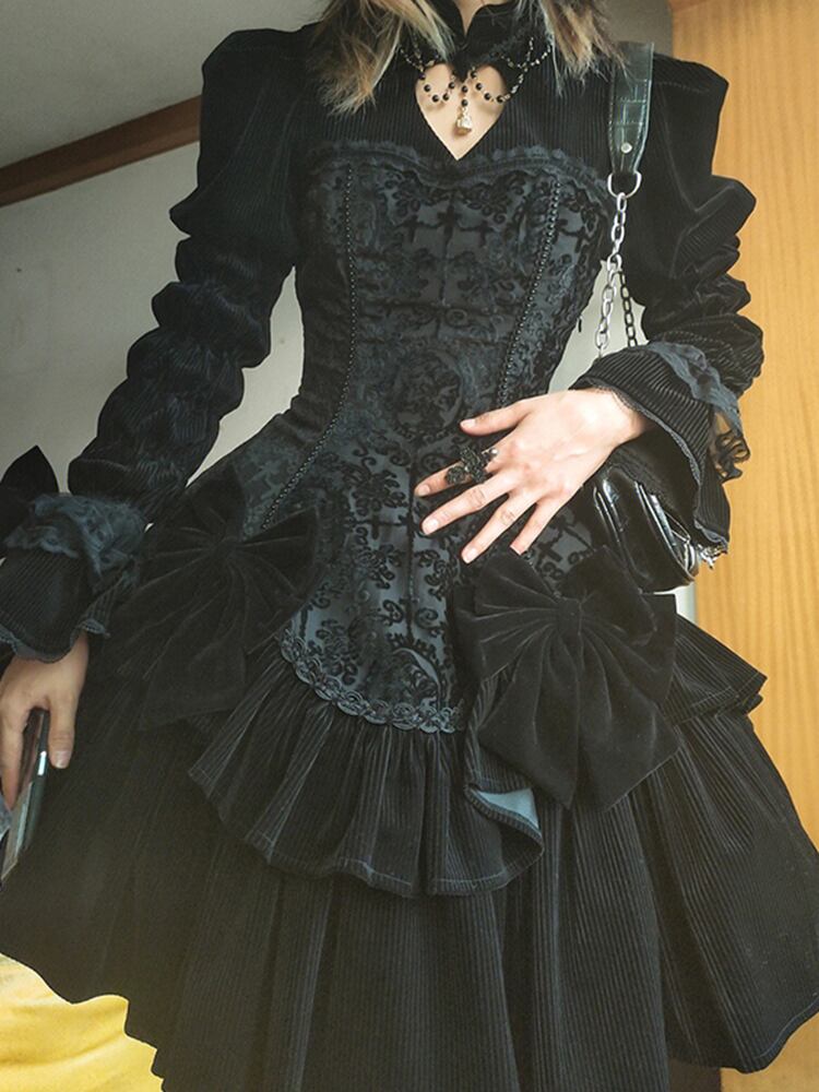 ゴスロリ ドレス レディース 2023 秋冬 クラシカル ジャカード 長袖ロリータ