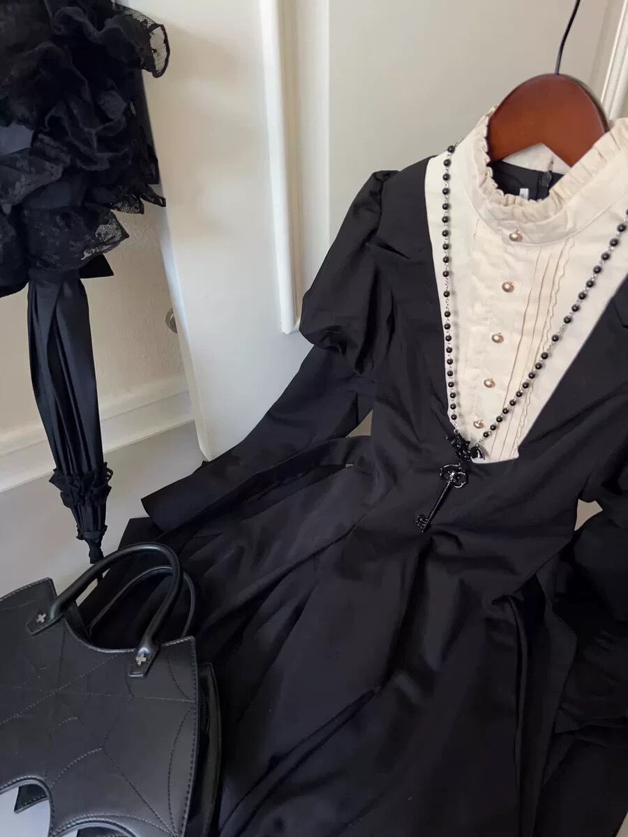 ロングワンピース 黒 クラロリ lolita メイド 修道女